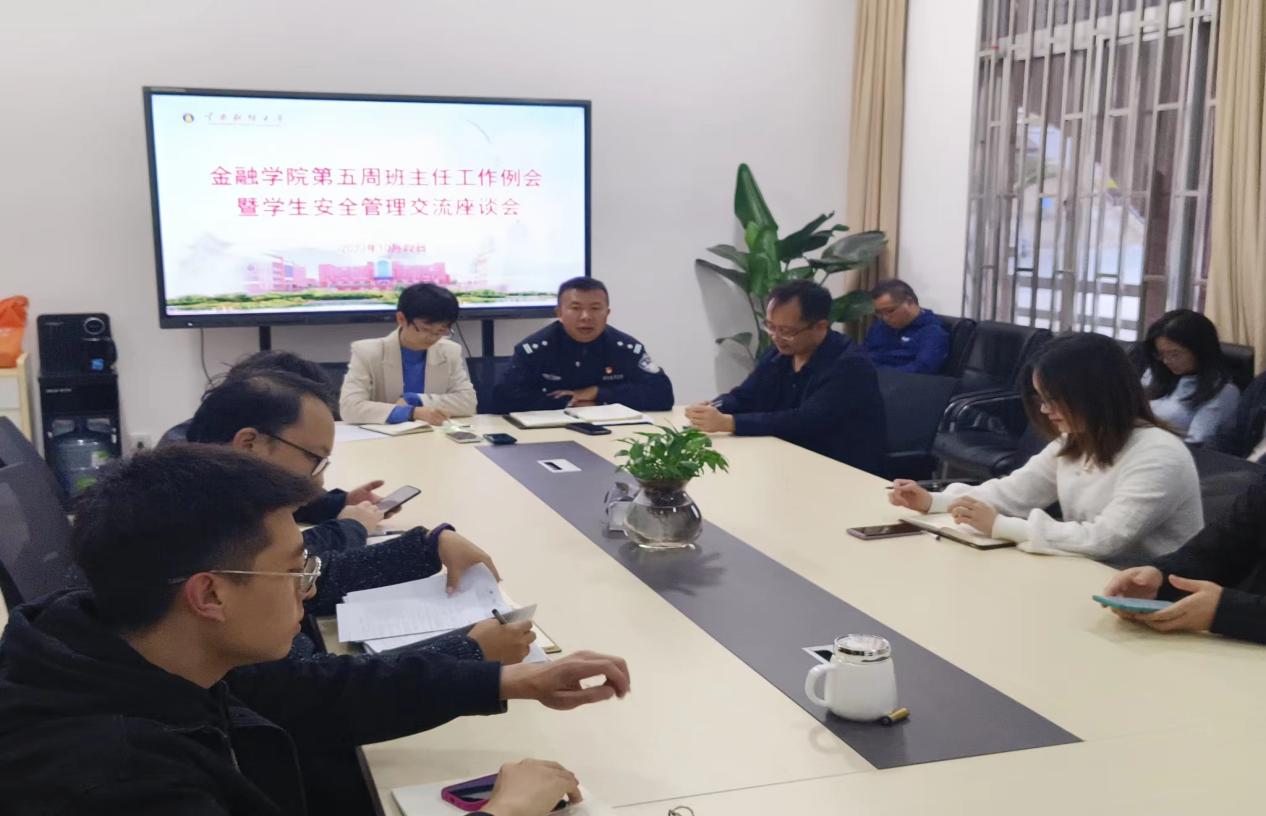 为进一步增强师生防诈反诈意识,提高辅导员和班主任对于学生事件的应急处置能力,10月22日,金融学院在博远楼115会议室召开学生安全管理交流座谈会。会议由金融学院党委副书记郭丽仙主持,马村派出所普劲松警官一行应邀参加。