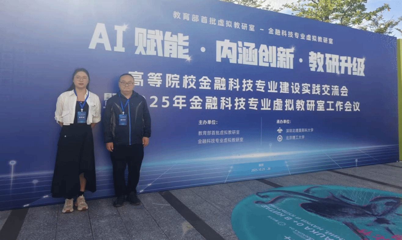 为深化学院金融科技专业建设和金融科技课程建设,追踪国内最新金融科技教研成果,推动学院教研升级,金融学院金融科技系教师王伟丞、主任丁冰清赴广东深圳,参加于2025年10月25日至26日召开的高等院校金融科技专业建设实践交流会暨2025年金融科技专业虚拟教研室工作会议。