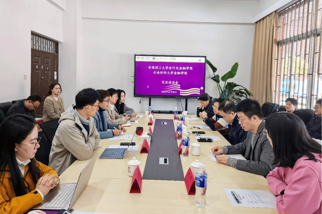 2025年11月30日上午,香港理工大学会计及金融学院副院长吴强教授一行到访学院进行调研交流。学院党委书记胡小珊、院长周伟、党委副书记郭丽仙、副院长马彧菲,各系主任、副主任,以及教师代表参加了座谈。座谈会由胡小珊主持。