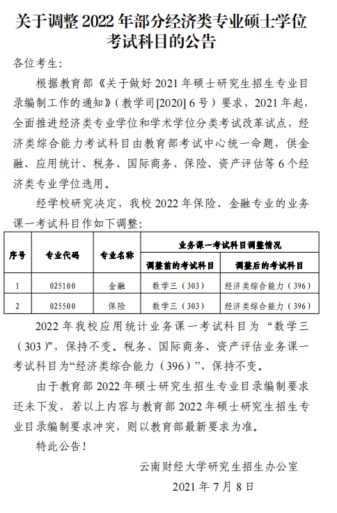 转发研究生处《关于调整2022年部分经济类专业硕士学位考试科目的公告》