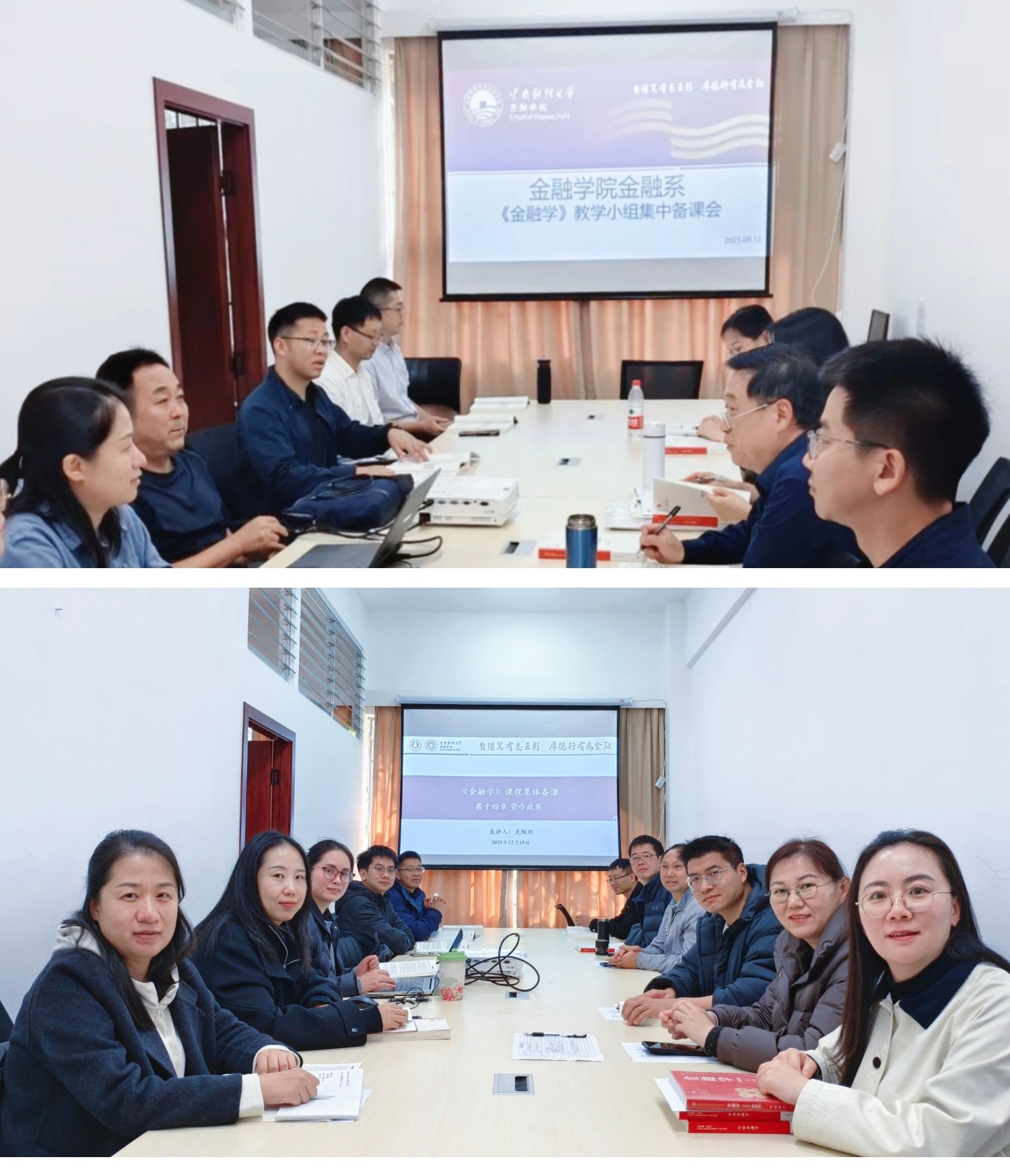 本学期正值《中国金融学》原创性教材出版之际。2025年8月,教育部组织中央财经大学、西南财经大学编写的2本《中国金融学》教材出版发行。该教材是“中国系列”原创性教材建设的重要成果,是高校经济学学科相关专业核心课程教材。学院多次委派课程组教师前往中央财经大学和西南财经大学参加教学研讨会和试用试教备课会。教师于参会后,在集体备课会上共享资源、分享心得,进一步扩大参会的影响和辐射。