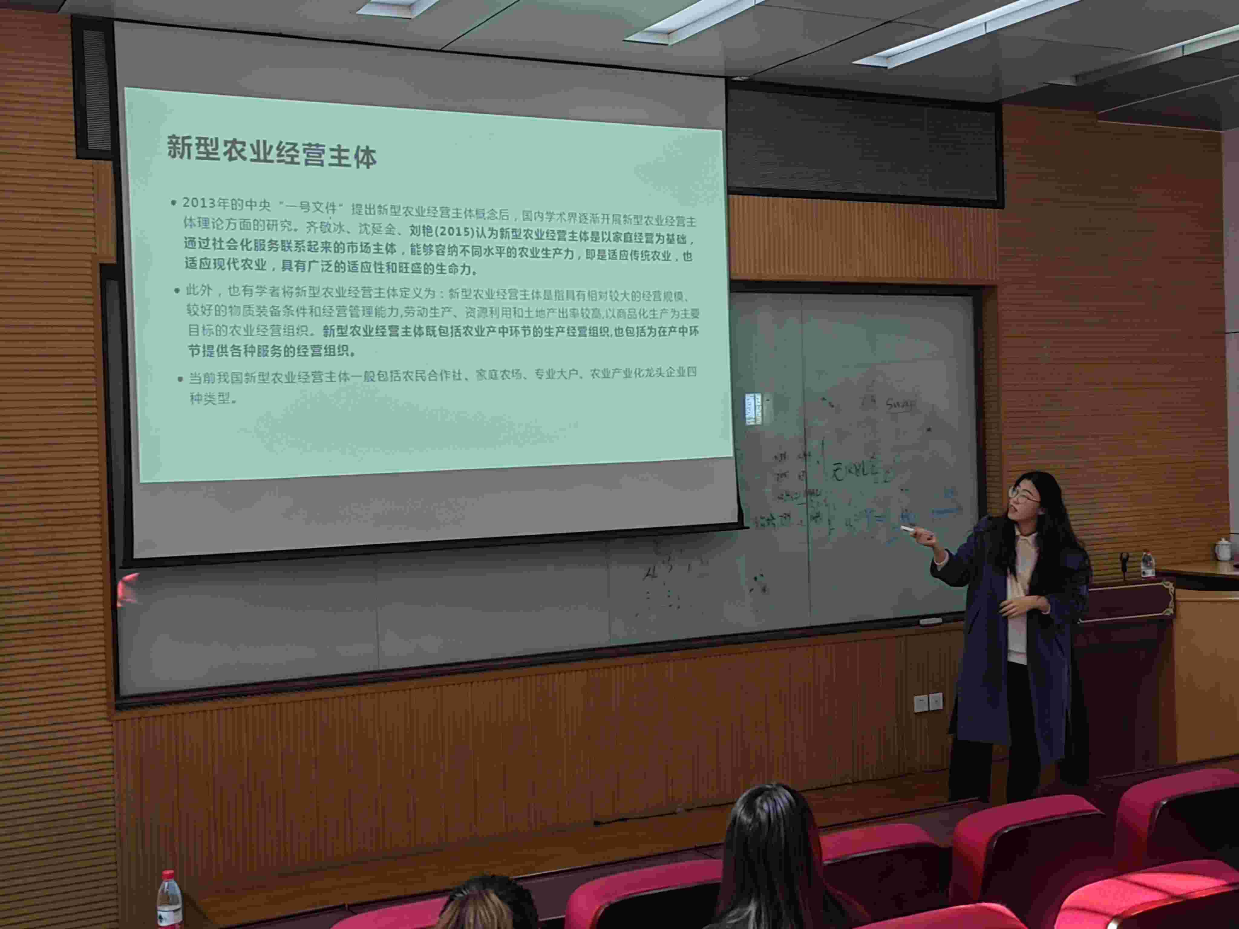 在“青年学生学术交流”阶段,2022级金融学硕张杰华分享了论文《数字普惠金融对新型农业经营主体创立的影响与机理——来自中国1845个县域的经验数据》(发表刊物:《金融研究》,2023年第4期,论文作者:黄祖辉,宋文豪,叶春辉)。她详细为大家讲解了数字普惠金融对新型农业经营主体创立的影响与机理。
