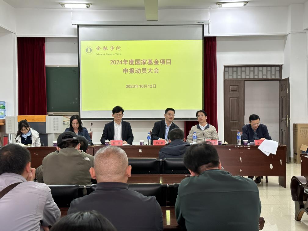 10月12日中午,学院在博远楼103会议室举行“2024年度课题申报动员大会”。学校副校长李正彪、科学技术处处长段云龙、副处长金杰、金融学院院长周伟、副院长李云仙以及学院教师参加了本次大会,李云仙主持本次会议。