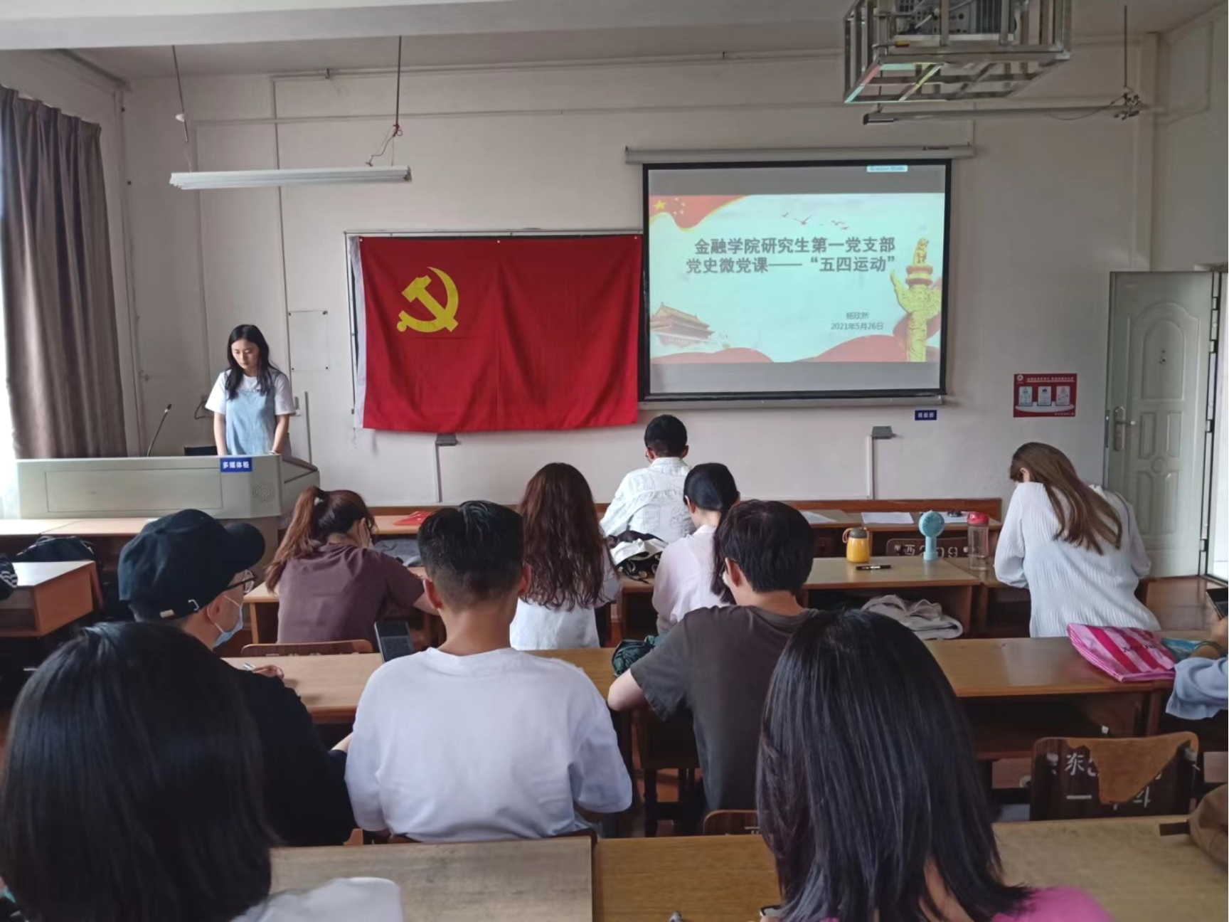 5月26日下午,为深入开展党史学习教育,感受百年风华,金融学院研究生第一党支部在思远楼301教室组织开展了首次“微党课”主题党日活动。活动由研究生第一党支部书记汪薇萍主持,支部委员杨欣然主讲,支部全体党员参加。