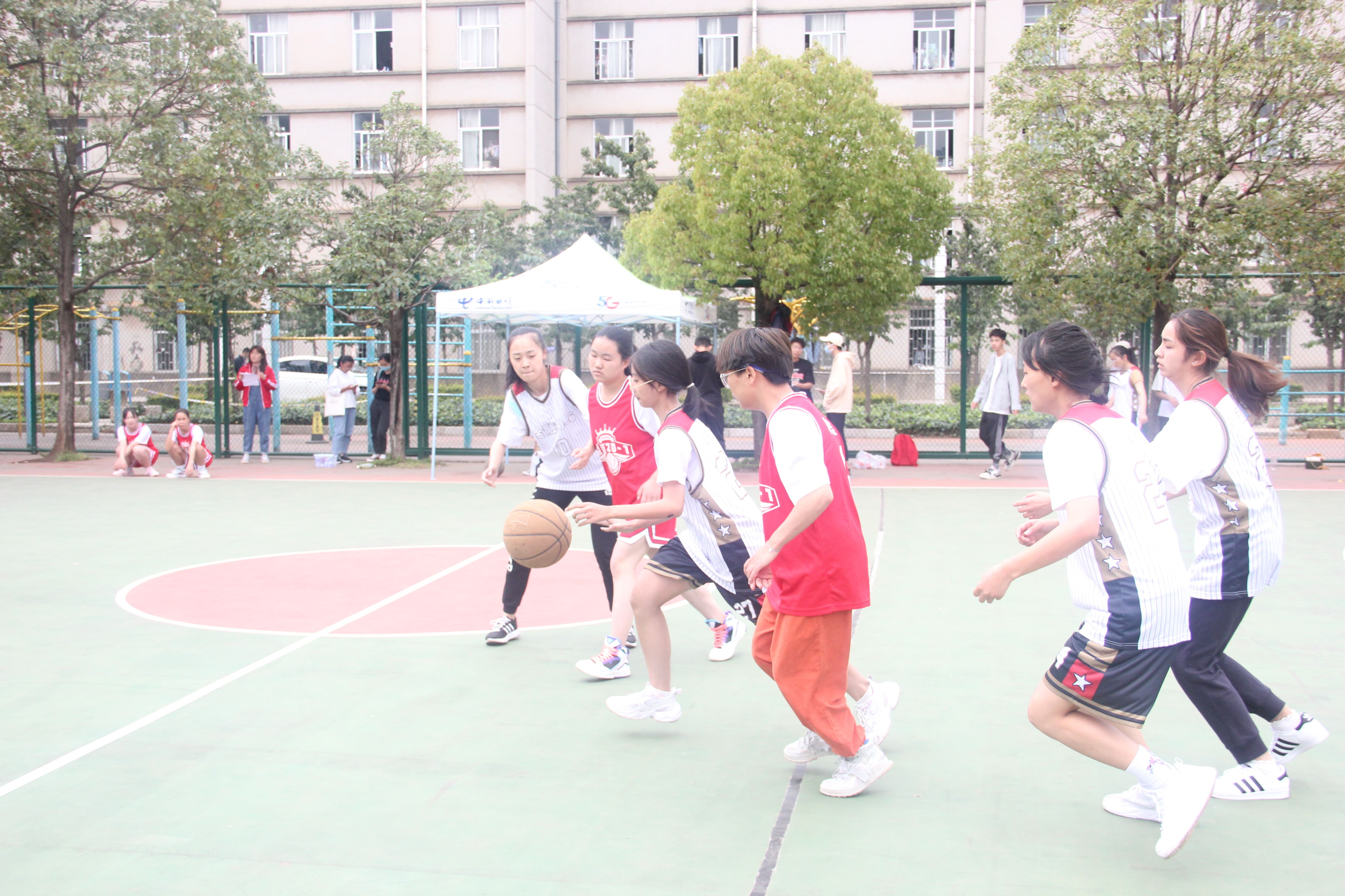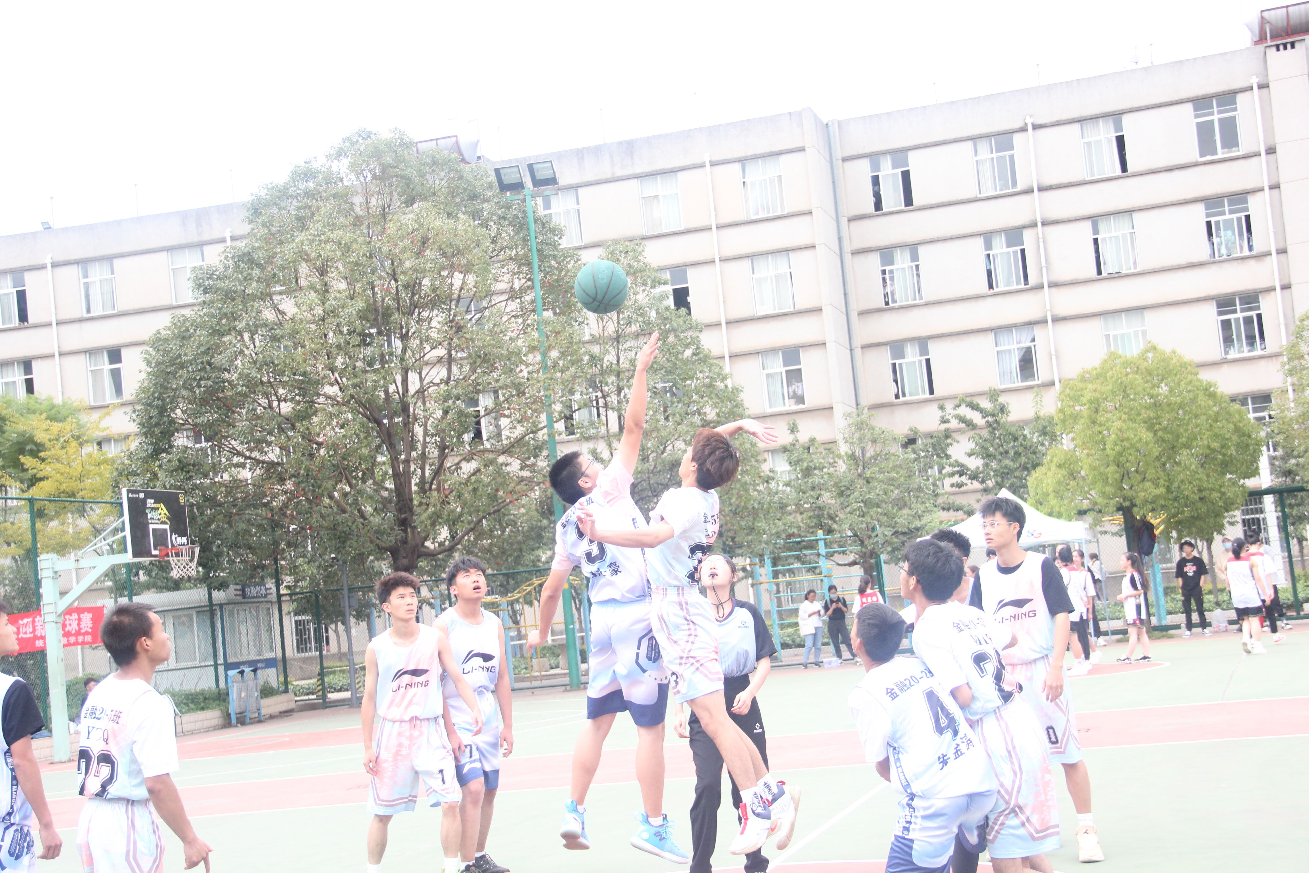 为了丰富同学们的文体娱乐生活,充分发挥同学们的团队协作精神,增强同学们的凝聚力和自豪感。金融学院于10月12日12时40分在彩色球场举行迎新篮球赛活动。