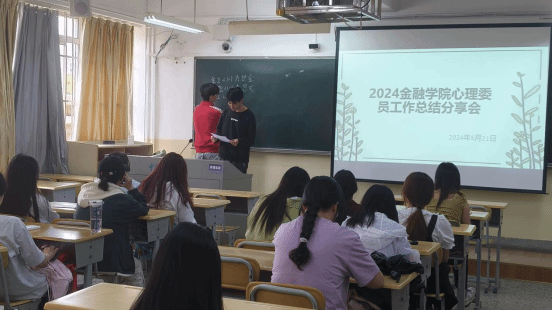 金融学院于2024年5月21日中午举办了一场精彩的心理委员分享会,旨在为校级优秀心理委员竞选提供展示锻炼的舞台。本次活动邀请了金融学院全体心理委员参加,优秀心理委员候选人进行了述职报告和工作心得分享。