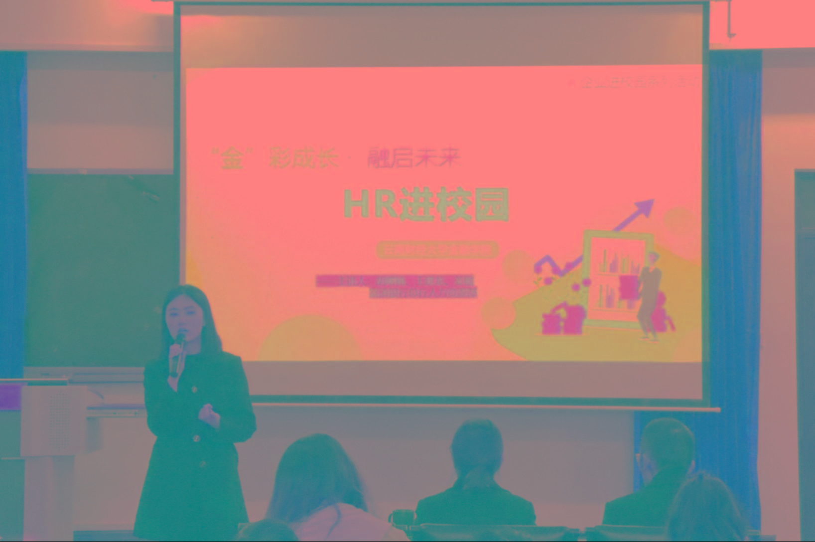 讲座由富滇银行总行人力资源部3位负责校园招聘的资深HR主讲。他们给同学们介绍了富滇银行的发展历程,从成长成才、改革创新、职业晋升三个方面介绍了富滇银行的企业文化。现在在富滇银行担任HR的毕业校友姜楹给同学们分享了工作后的感受,勉励大家在校时努力奋斗、做好自己的未来规划。同学们和三位主讲人进行了互动交流。