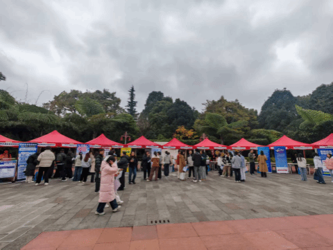 为促进毕业生与用人单位精准对接,2025年11月21日下午,由学校招生与职业发展中心主办、金融学院承办的“周五职通车”专场招聘会在龙泉路校区南院图书馆前成功举办。本次招聘会共邀请24家用人单位到场,涵盖金融、保险、证券、教育、服务等多个行业领域,为毕业生提供了丰富的就业选择。
