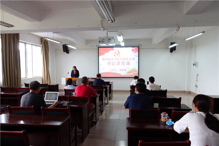 6月19日下午,为庆祝中国共产党成立99周年,继续教育学院直属党支部书记傅银鹰在学院406报告厅,以“新时代如何弘扬爱国主义精神”为题为学院全体党员上专题党课。