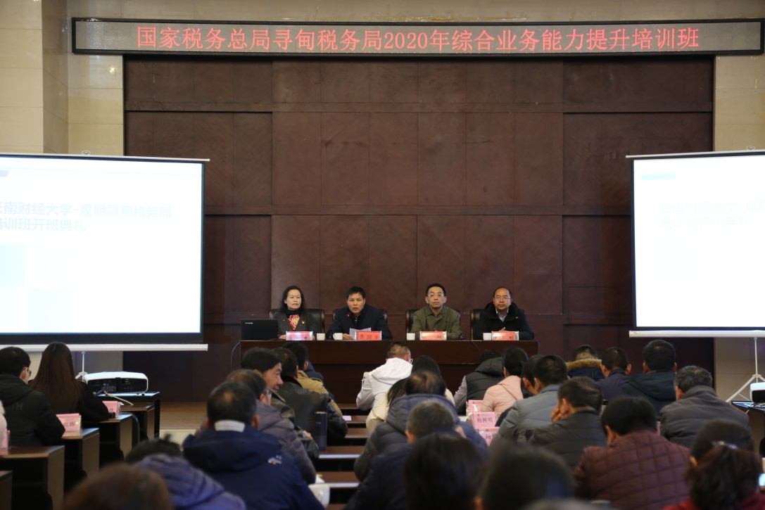 12月7日上午,由国家税务总局寻甸县税务局和bat365官网继续教育学院合作举办的第二期寻甸县税务局2020年综合业务能力提升培训班开班仪式在博华楼报告厅举行。出席开班仪式的领导有寻甸县税务局党委书记、局长李国华,继续教育学院院长张炯、副院长吴红刚,以及73名培训学员参加开班仪式。开班仪式由继续教育学院直属党支部书记傅银鹰主持。