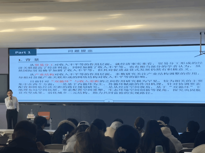 刘梦副教授围绕“双循环与益贫式增长”的核心方向,明确该领域的研究价值与现实意义,强调“理论落地+实证支撑”的研究理念,结合自身研究成果展开分享,通过展示已发表研究的实证过程,演示如何构建国家需求、理论不足、研究问题和创新点的逻辑闭环。在选题指导上,刘梦副教授提出选题需紧扣政策热点与现实需求,数据构建要注重多源匹配与口径统一,实证分析需强化机制检验与异质性分析,为学生论文撰写与发表提供精准指引,同时提出相关建议助力共同富裕。