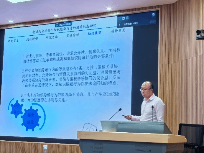 本次青年学者论坛由商学院程建青老师和经济学院李冲老师分别以《会话约束理论下知识隐藏行为的前因组态研究》和《融资结构、技术创新与产业动态化变迁》为题,就各自的研究成果进行了汇报与交流,3位点评专家有针对性的提出了修改意见,在座的师生进行了深入的交流互动,专家的建议及现场互动交流对于改进2篇论文质量起到积极的效应。
