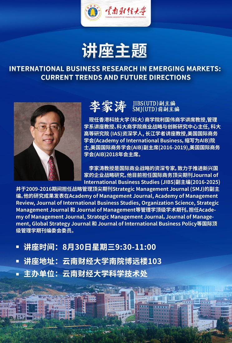【学术讲座】International Business Research in Emerging Markets: Current Trends and Future Directions