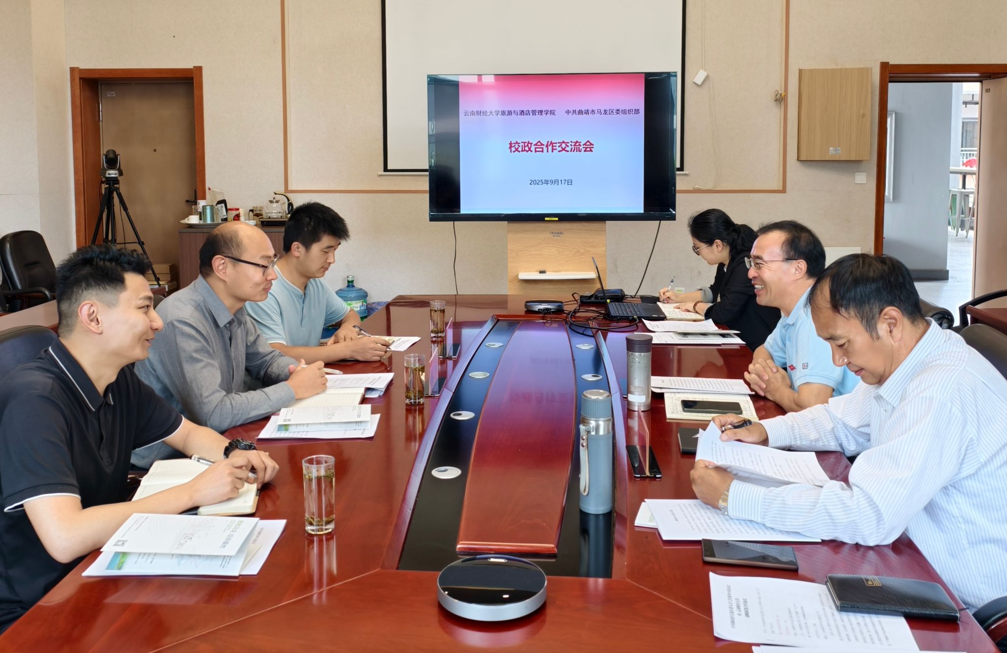 9月17日,云南省曲靖市马龙区委组织部副部长曹曦一行到访bat365在线中国官网登录入口旅游与酒店管理学院。双方就推动校政合作、促进人才培养与产业发展深度融合举行交流座谈会。学院院长晏雄、党委副书记李永祥参加此次交流会。