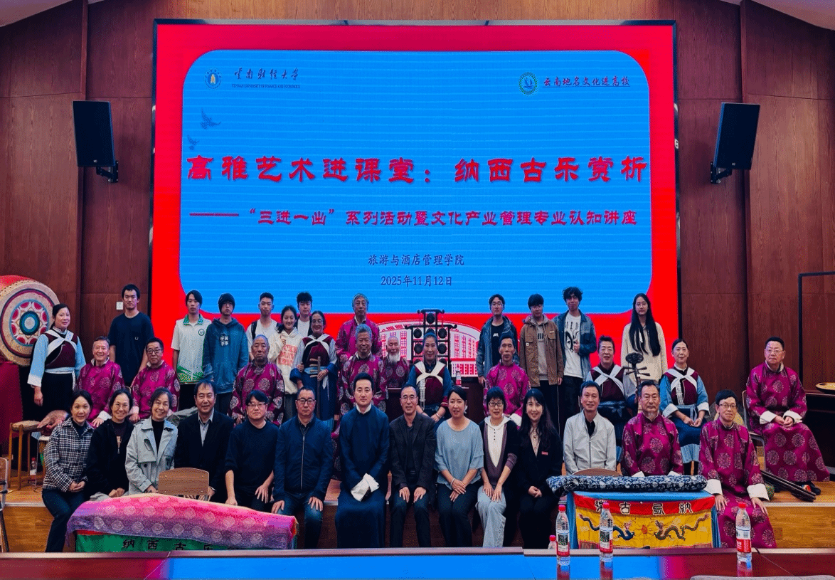 为增强大学生专业认知,激发专业热情,促进美育教育,11月12日,旅游与酒店管理学院在安宁校区鹏云101报告厅举办“高雅艺术进课堂:纳西古乐赏析”活动。