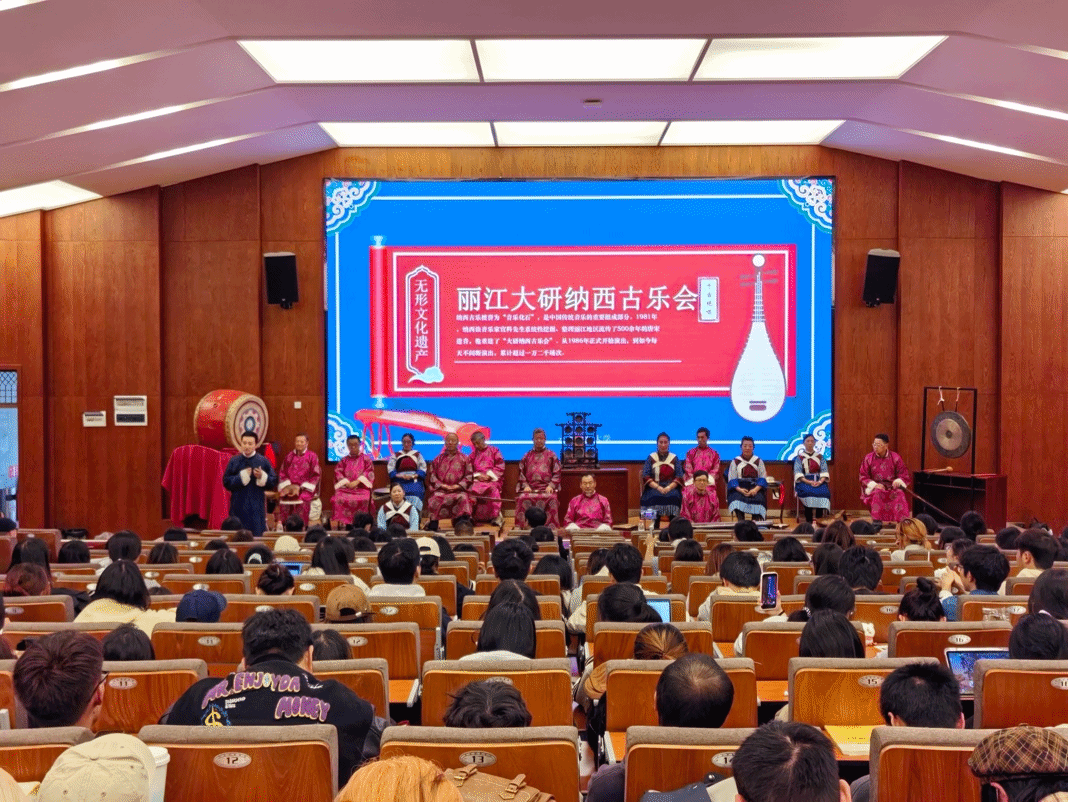 通过国家级非遗传承人领衔演绎、曲目讲解与互动交流,师生们沉浸式聆听纳西古乐《白沙细乐》《浪淘沙》等经典曲目,欣赏千年唐宋遗音的独特韵味与精神内涵,感受文化产业在传统文化保护与创新中的重要作用,激发了投身文化产业的热情。