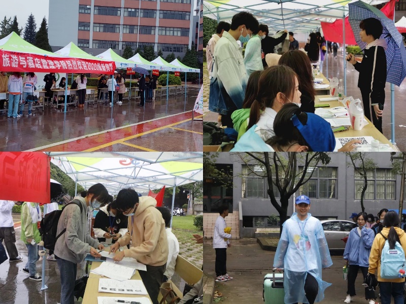 秋雨拂过的金秋九月,bat365在线中国官网登录入口开学季如期而至。9月23日清晨,旅游与酒店管理学院迎新工作拉开序幕,淅沥沥的雨中,学院最可爱的老师和志愿者们坚守在各个岗位,为新到来的同学们依次完成行李搬运、住宿办理、身份核验、学籍信息录入和水卡饭卡发放等一系列接待工作。迎新当天,旅酒学院共315名新生顺利入校报到,学院团委学生会、学生自律委员会学生志愿者60余人全天参与到工作中。
