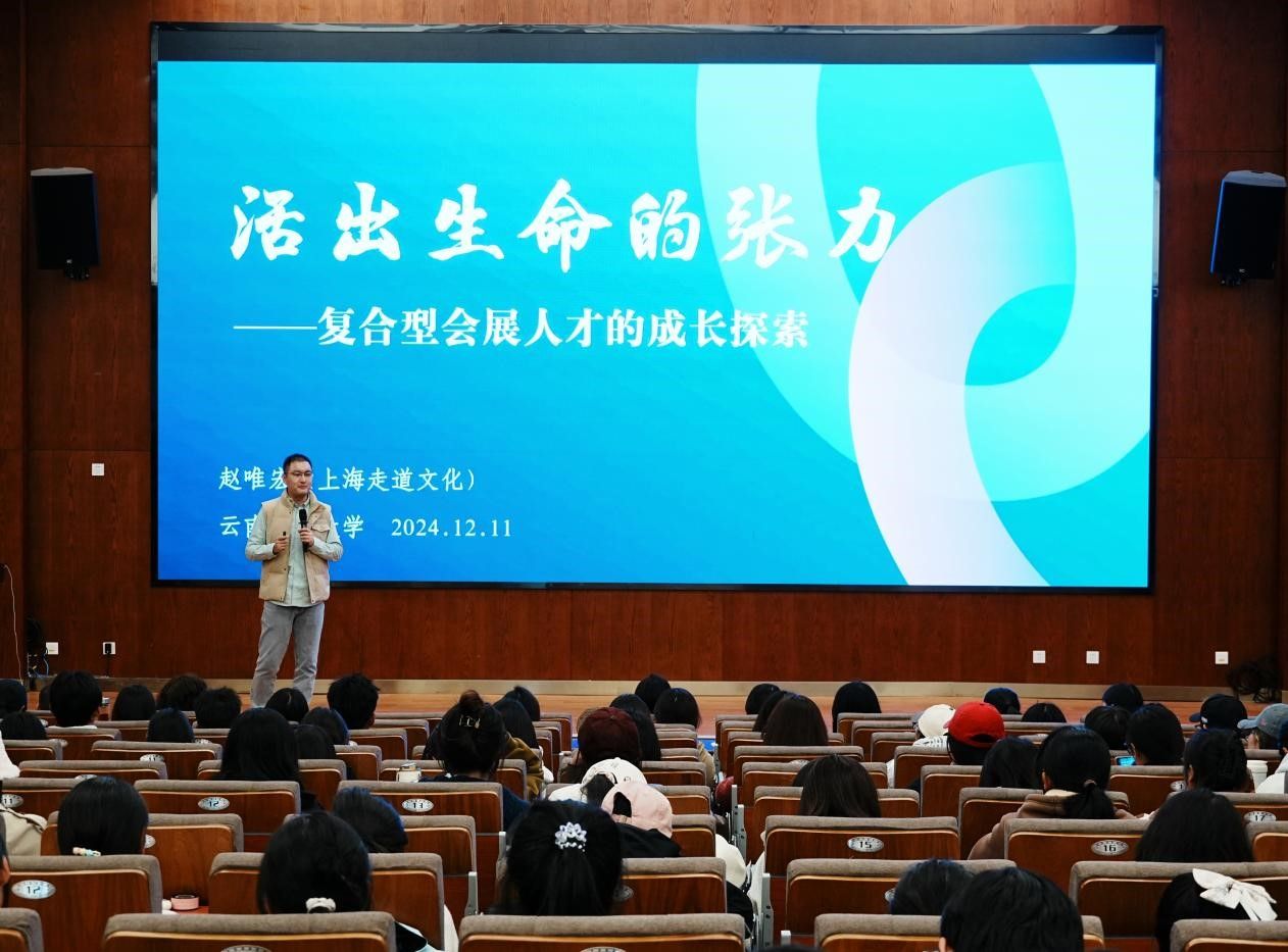 为推动会展经济与管理专业的复合型人才培养,拓展学生的专业视野,12月11日,旅游与酒店管理学院在安宁校区鹏云一附楼101报告厅成功举办了题为“活出生命的张力——复合型会展人才的成长探索”的专题讲座。会展经济与管理专业近300名师生参与了此次讲座。