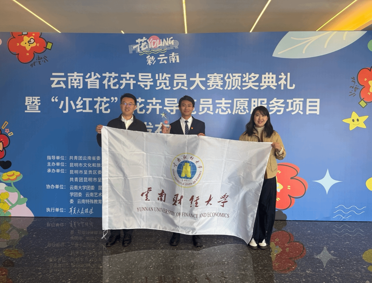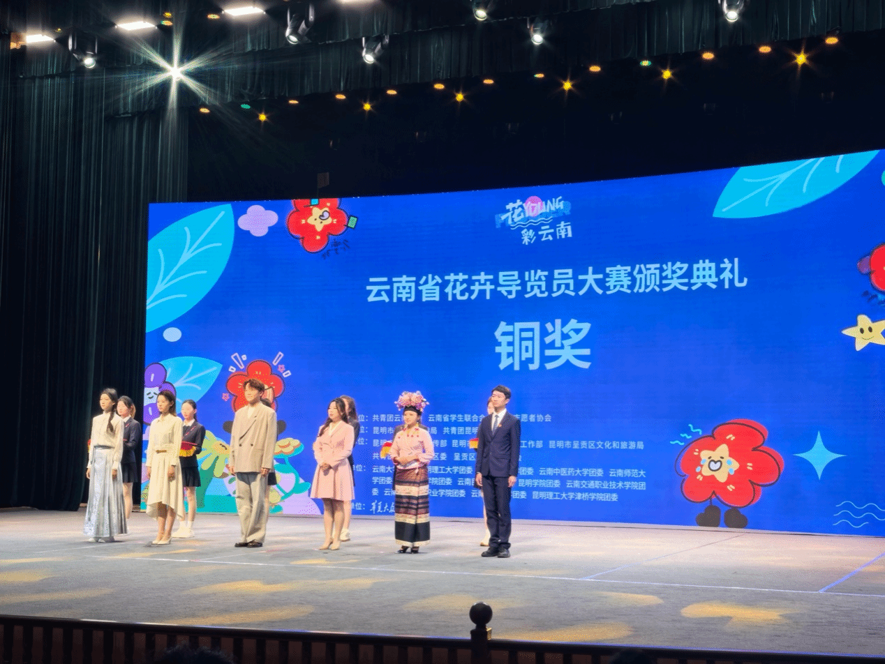 自大赛启动以来,呈贡区组委会收到全省30余所高校及政府部门、企事业单位参赛选手提交的中文、外语、手语三个赛道的400余份参赛作品,经过前期初赛、复赛、决赛的选拔,bat365官网旅游与酒店管理学院旅游22-1班刘可同学凭借优异表现在大赛中脱颖而出,荣获云南省花卉导览员大赛铜奖及“最佳中文导览员”荣誉称号。12月18日,刘可在云南省花卉导览员大赛颁奖典礼暨“小红花”花卉导览员志愿服务项目发布仪式上进行导览展演,讲述云南鲜花故事,展现云财青年风采。