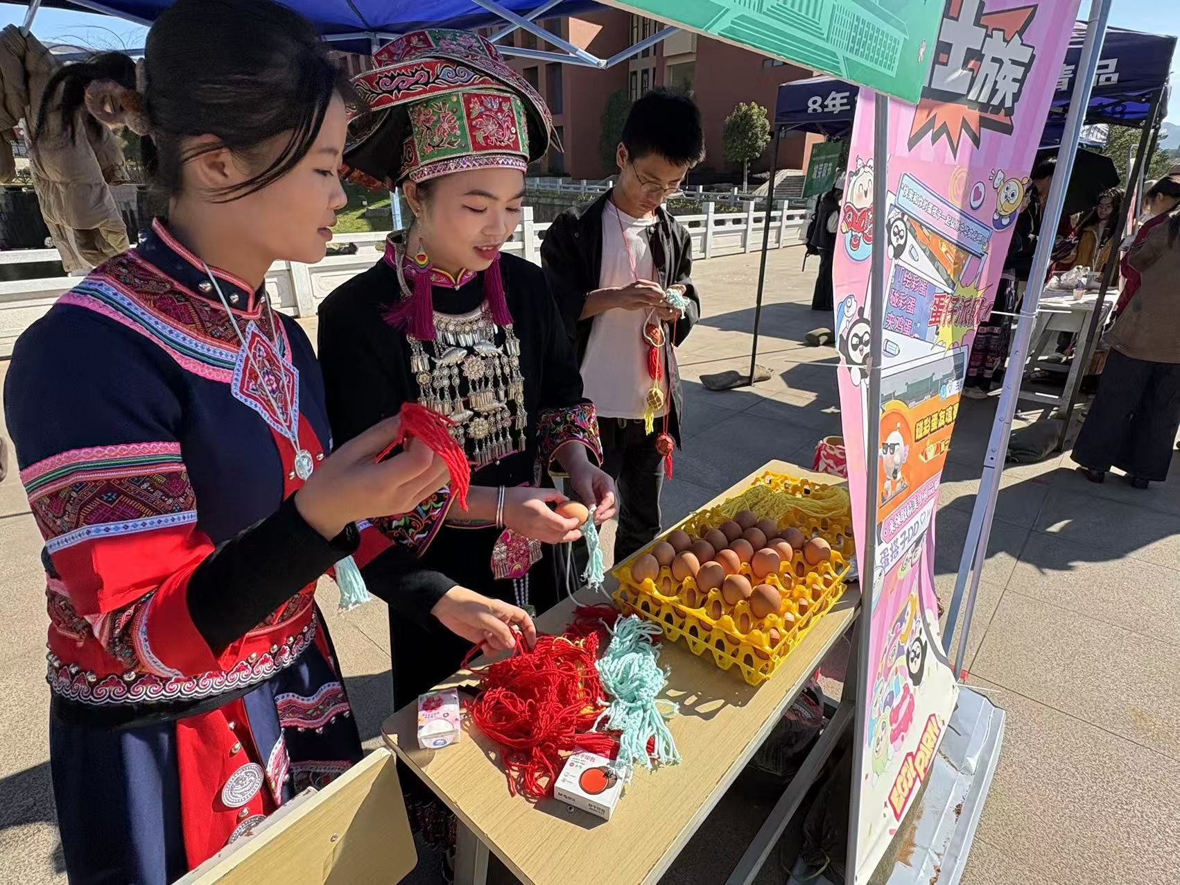 在前期初赛的激烈角逐中脱颖而出的20支参赛队伍围绕主题精心布展,各展风采,为云财校园带来一场精彩纷呈的民族团结盛宴。活动现场,参赛队员身着绚丽多彩的民族服饰,各民族主题展位如百花齐放,精彩的文化讲解互动与民族特色体验活动交相辉映,传统民族工艺与现代元素的融合相得益彰,充分展示了青年大学生对中华民族共同体意识的深刻理解和对多元民族文化的了解。