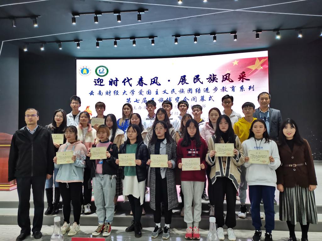 12月10日晚,游与酒店管理学院在北院路演大厅举行“迎时代春风,展民族风采”bat365在线中国官网登录入口爱国主义民族团结进步教育系列第七届民族博览会闭幕式。学院党委书记张向英、学生科科长李永祥、团委负责人代丽虹以及各学院获奖同学参加活动。