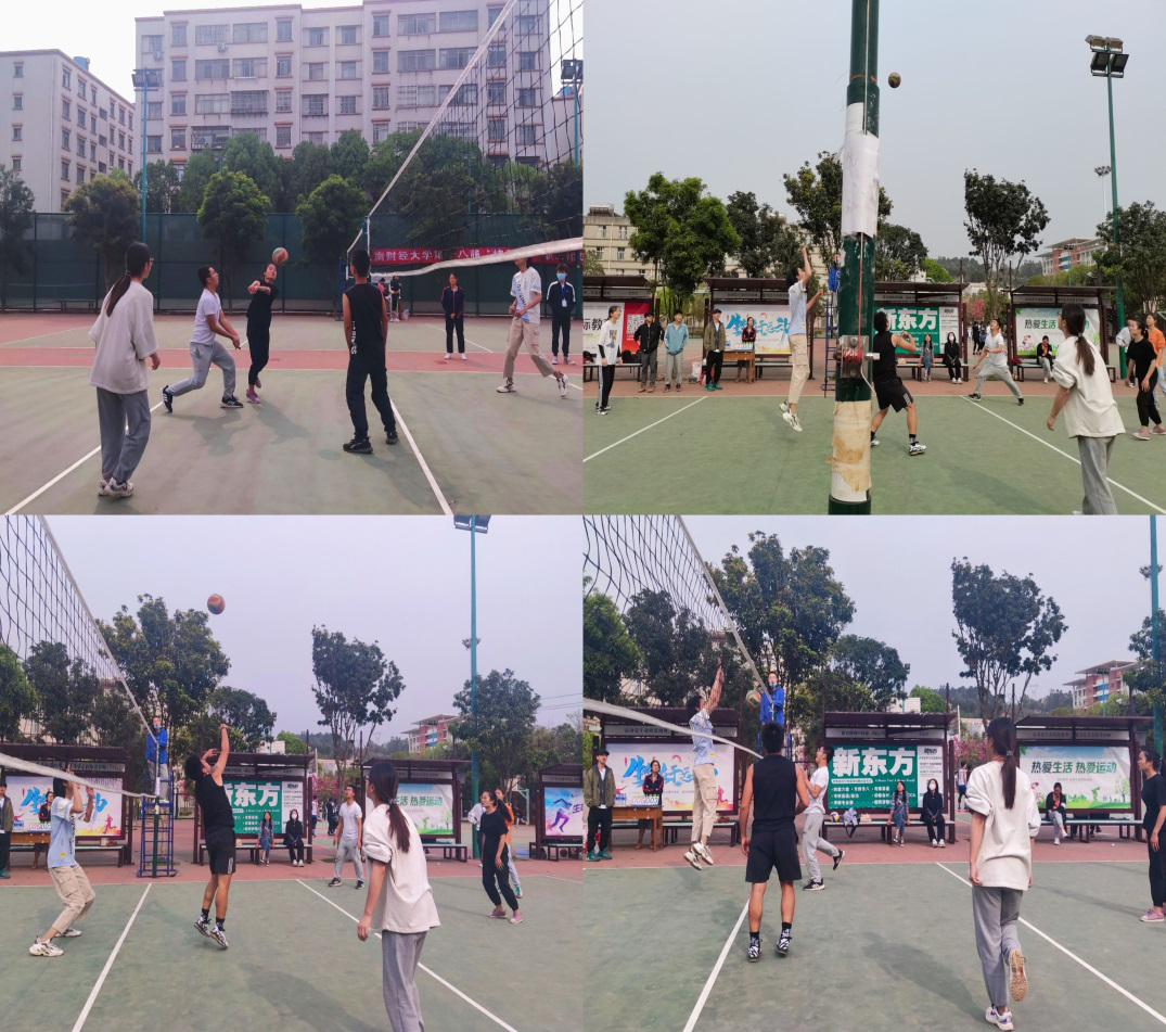 旅游20-1班和酒店20-1班的比赛随即也开始了。旅游一班通过队员之间默契的配合,赢下上半场的比赛,但酒店一班的球员们不甘落后,以不逊的实力在第二场发挥出了超高水平,双方在焦灼中以旅游一班的胜利结束了比赛。最后一场旅游20-2班和旅酒排球联队的比赛中,场外呼声高涨,两队球员凭借自己的球技,为观众们带来了一场精彩绝伦的角逐,最终旅游20-2班赢下了比赛。