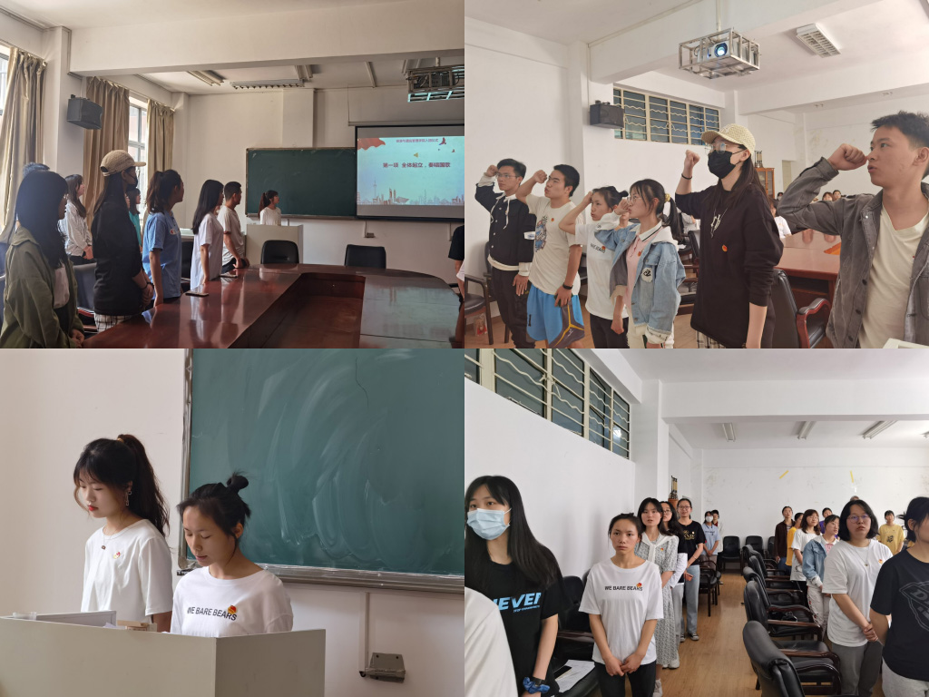 全体成员奏唱国歌,入团宣誓仪式正式开始,由团委学生骨干朱燕婷宣读新团员名单,随后,团员代表为新入团的成员颁发团员证、佩戴团徽,且新老团员一同进行入团宣誓、重温誓词。简短、庄重的宣誓仪式使新团员经历了一次心灵的洗礼、一次严肃而庄重的教育。新团员代表刘鸿燕上台发言,表示要时刻牢记入团誓词,在今后的学习和生活中,更加结勤奋、刻苦学习、努力拼搏,以实际行动展示共青团员的先进性,将来更好地报效祖国。团委学生骨干刘继娆上台发言,表达了对新团员的热烈祝贺和殷切希望,指出共青团是中国共产党领导的先进青年的群团组织,团员青年应当从小事着手,在学习、生活中发挥先进性作用。本次活动在全体参会人员洪亮的团歌合唱声中落下帷幕。