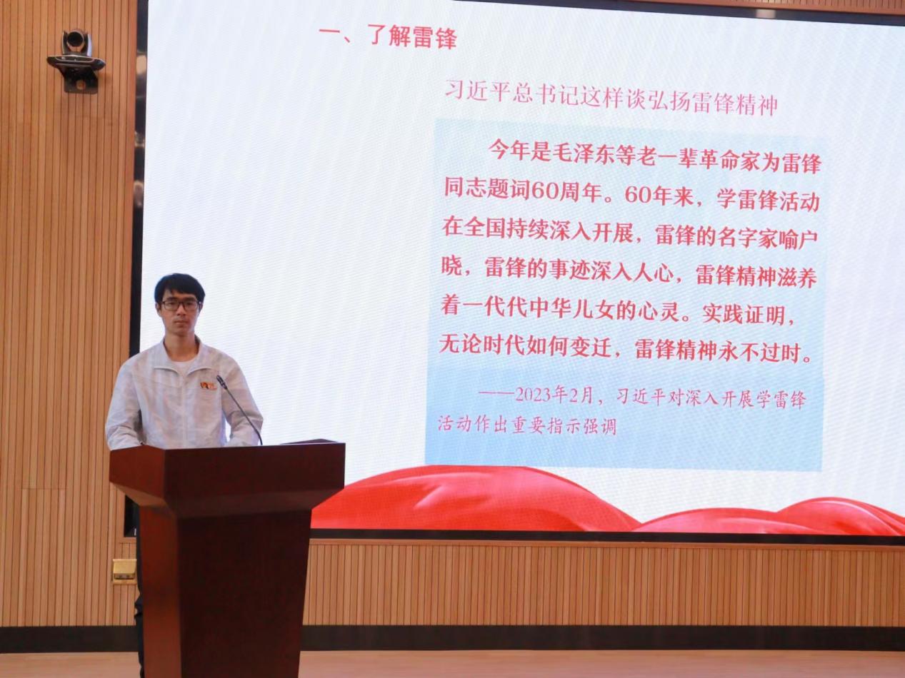 张海明回顾了习近平总书记在对深入开展学雷锋活动作出重要指示强调内容。要深刻把握雷锋精神的时代内涵,让雷锋精神在新时代绽放更加璀璨的光芒。“无论时代如何变迁,雷锋精神永不过时。”分享了雷锋“钉子”精神故事、雷锋的名言等内容,总结了雷锋内涵的奉献精神、“钉子”精神、艰苦奋斗精神。呼吁同学们在学习生活中助人为乐、关心集体、勤奋学习,以实际行动践行雷锋精神。