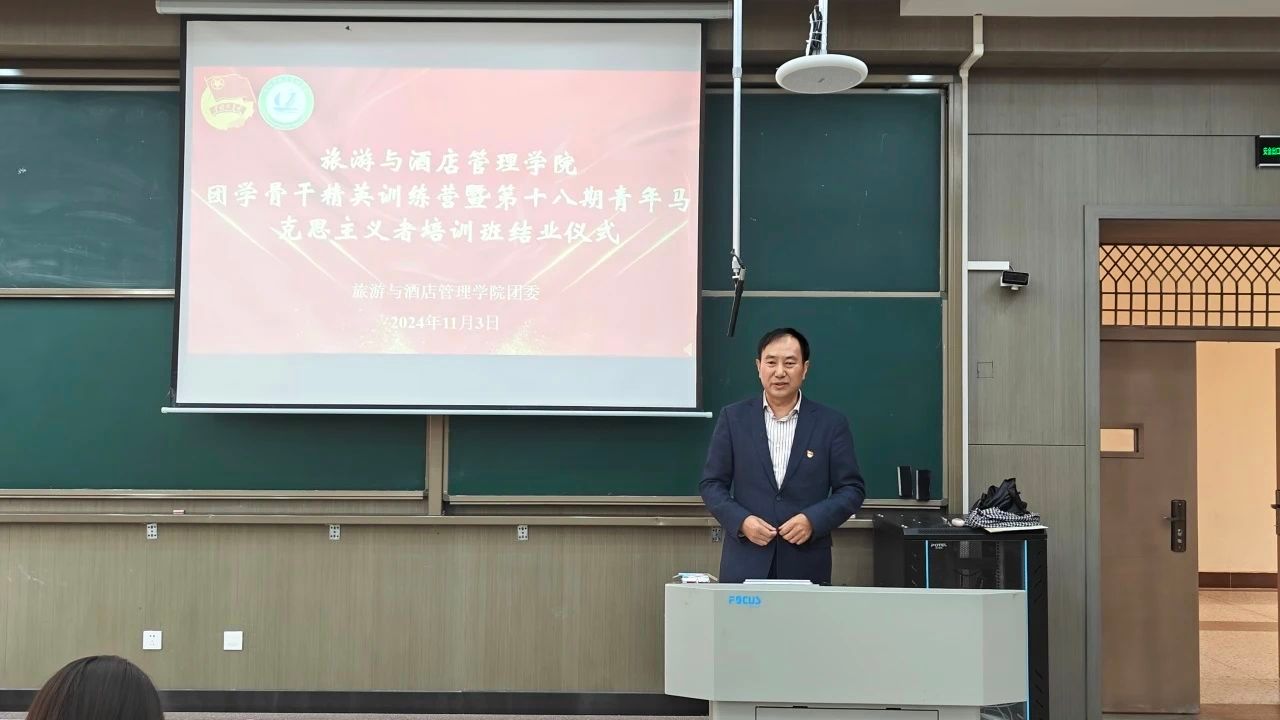 为进一步引领学院青年马克思主义者深入理解和践行铸牢中华民族共同体意识的内涵,在广大学生骨干中凝聚奋斗力量,11月3日下午,旅游与酒店管理学院团委于鹏云二208阶梯教室举行了以“筑牢民族梦,共绘同心圆”为主题的第九讲青马班培训。本次仪式由学院团委书记代丽虹担任主讲,第十八期青年马克思主义者培养工程全体学员参加学习。