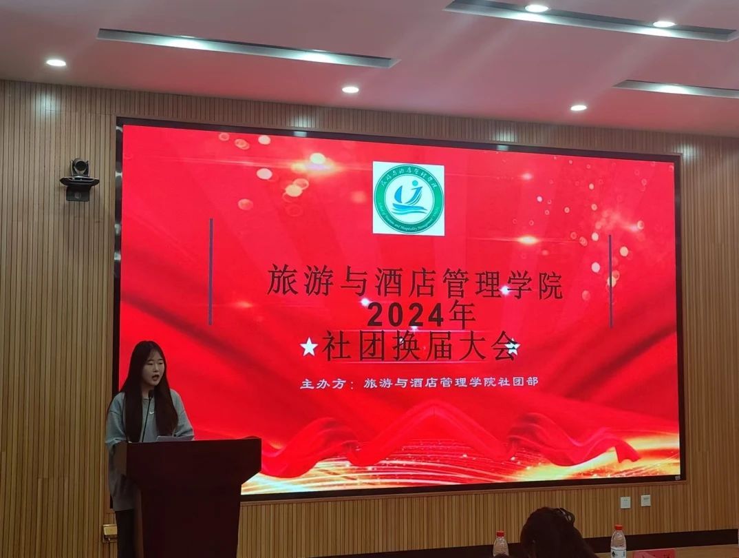 为进一步促进学生社团健康发展,切实发挥好社团指导单位指导作用,11月11日,旅游与酒店管理学院在齐远楼220报告厅举行2024年社团换届大会。学院党委副书记、滇佩留璃协会指导老师李永祥、雨林风情协会指导老师杨倩、学院团委书记代丽虹、学院社团部学生骨干以及全体社团成员参加会议。