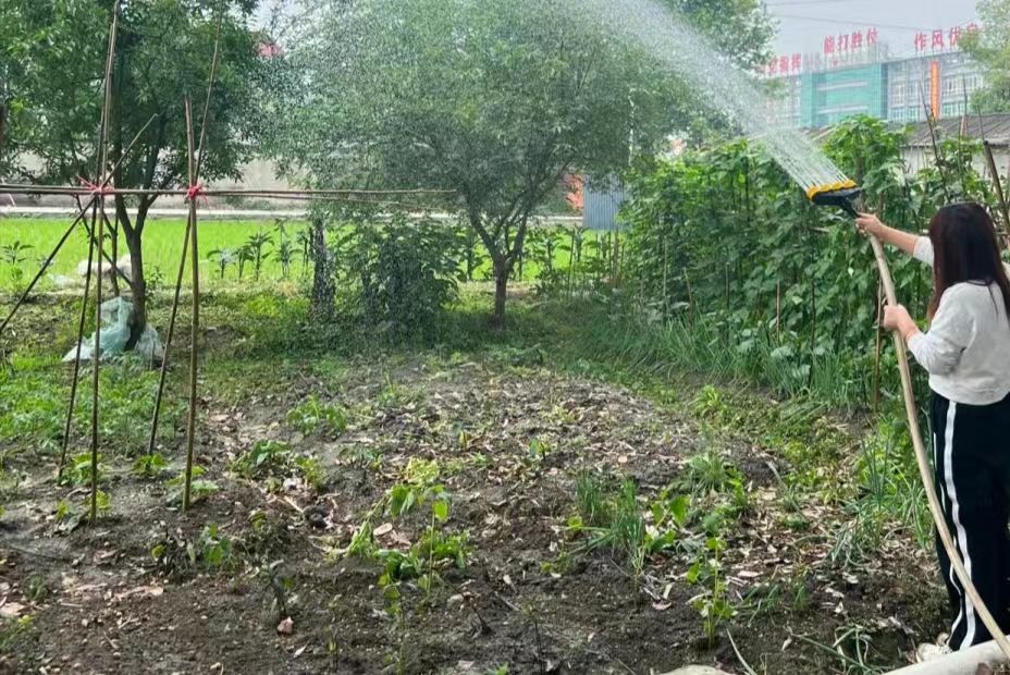 在土旺村专业技术人员章老师的带领下,实践队到达生态农业示范基地进行参观,章老师向实践队介绍了喷灌和微喷灌两项节水灌溉技术,其中,喷灌通过喷头将水均匀喷洒到作物上,适合大面积农田,微喷灌的水雾更细,适合对水分需求更精细的作物。同时,他围绕从原材料选取到堆肥发酵的全过程向实践队讲解了有机肥料的制作,队员们在他的指导下进行有机肥料制作,领悟了乡村生态农业的魅力。