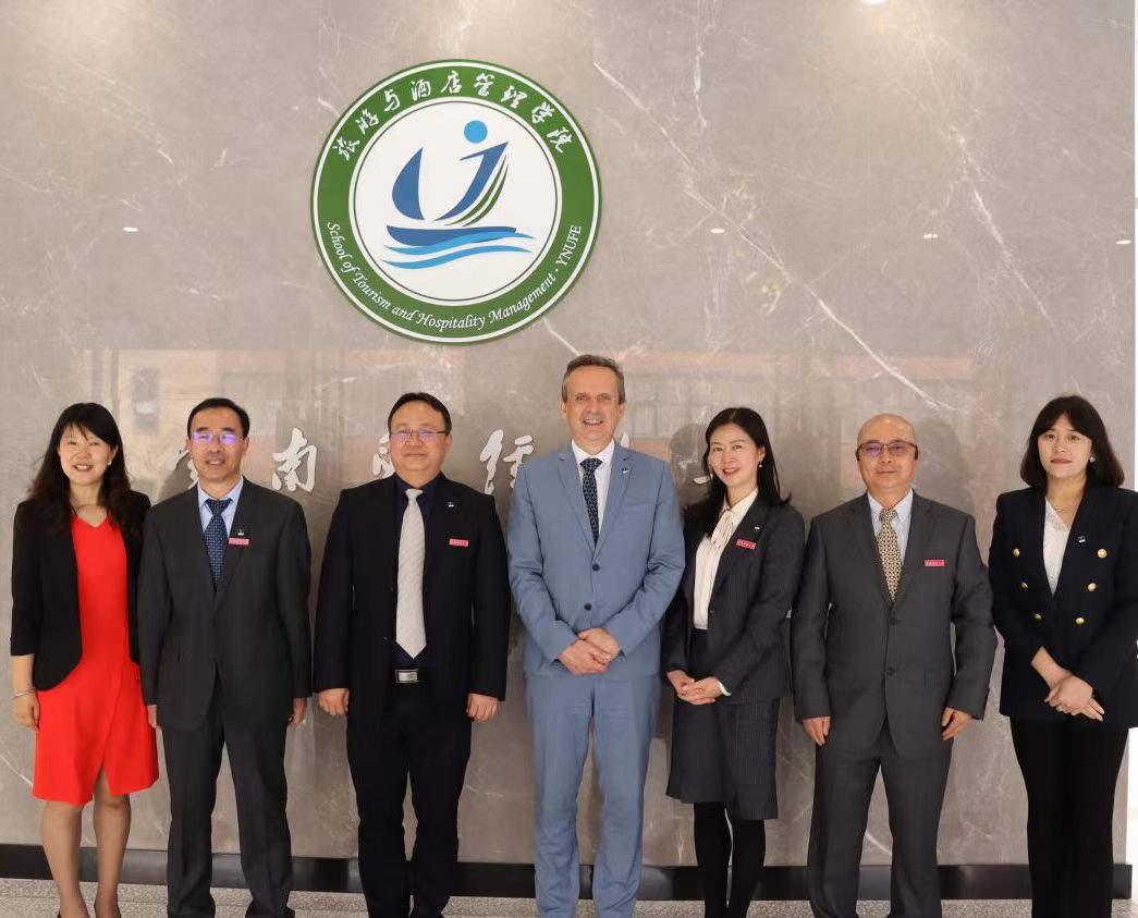 3月28日上午副校长颜明在安宁校区齐远楼333会议室会见了中法合作办学项目法方代表、法国瓦岱勒国际酒店与旅游管理商学院国际部经理Paul DAZEMAR先生。对外合作交流处处长张洪烈、旅游与酒店管理学院院长晏雄、书记李健、副院长李雪松陪同座谈,本次会议由王智慧副院长主持。