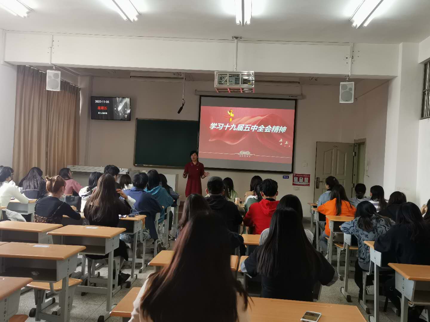 11月6日13:00,旅游与酒店管理学院开展2020年“争先锋、创一流”万名党员进党校活动暨发展党员集中培训第五课在北院卓媒624教室举行,学院党委委员王智慧以“学习十九届五中全会精神”为为学院学生党员、入党积极分子及发展对象进行了培训。