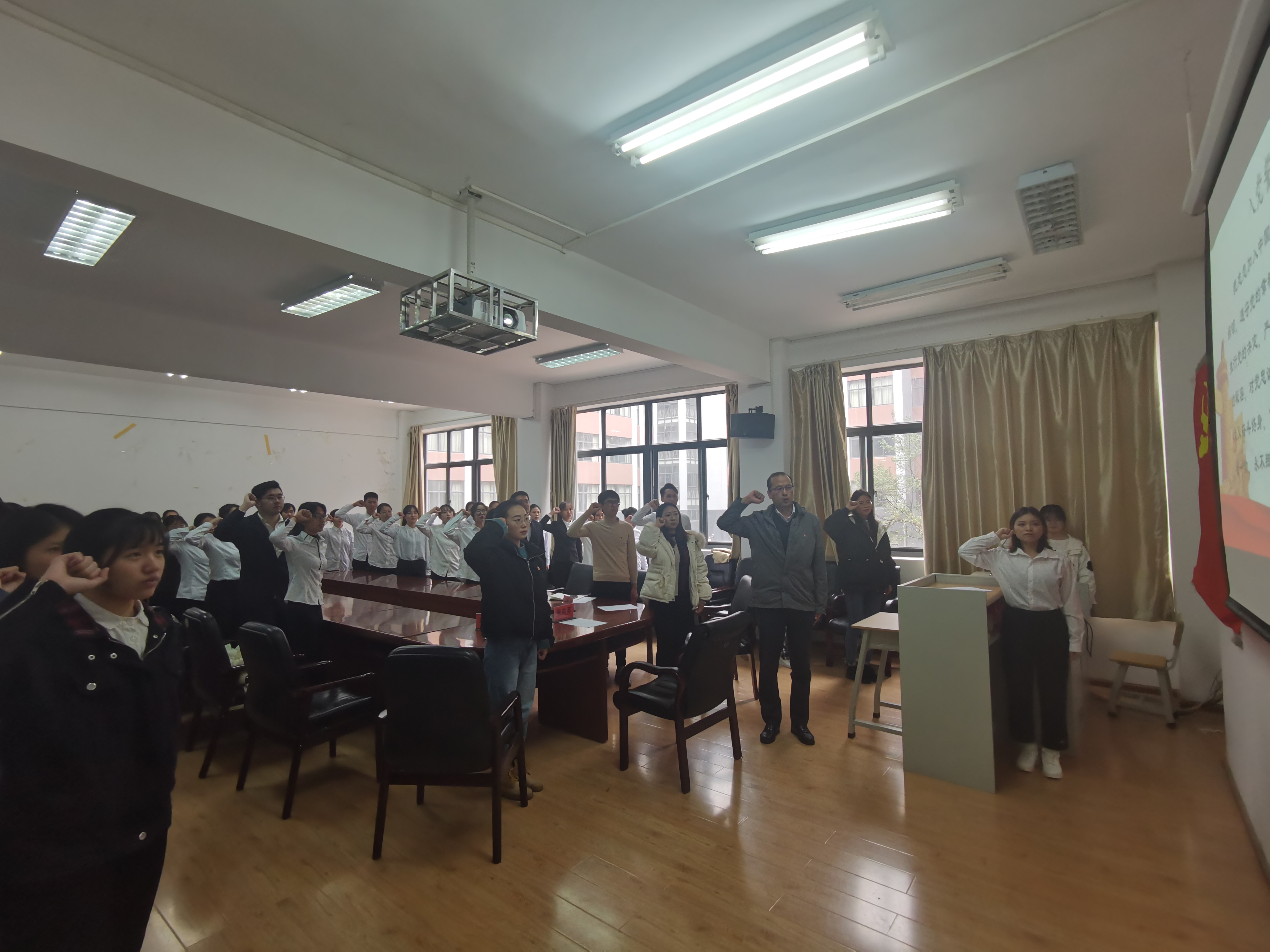 活动以奏唱《国际歌》拉开帷幕,学院专职组织员杨倩致辞并宣读了参加宣誓的预备党员名单。党员教师们为预备党员代表佩戴党徽,并发放党章和党费证。在张向英书记的带领下,全体预备党员面对鲜艳的党旗,右手握拳,进行入党宣誓,其他党员重温了入党誓词。宣誓毕,预备党员谢琼代表全体新发展的预备党员进行了发言,表达了入党后的喜悦以及作为党员所要肩负的责任,表明了作为预备党员的入党决心和为党和人民服务的决心。仪式最后,张向英书记作了总结讲话,他向全体预备党员加入党组织表示了真诚的祝贺,并强调作为一名党员,要牢记入党初心,遵守党的章程,不断提高自身素质加强自我建设,以优秀党员的标准严格要求自己,发挥党员的先锋模范作用。