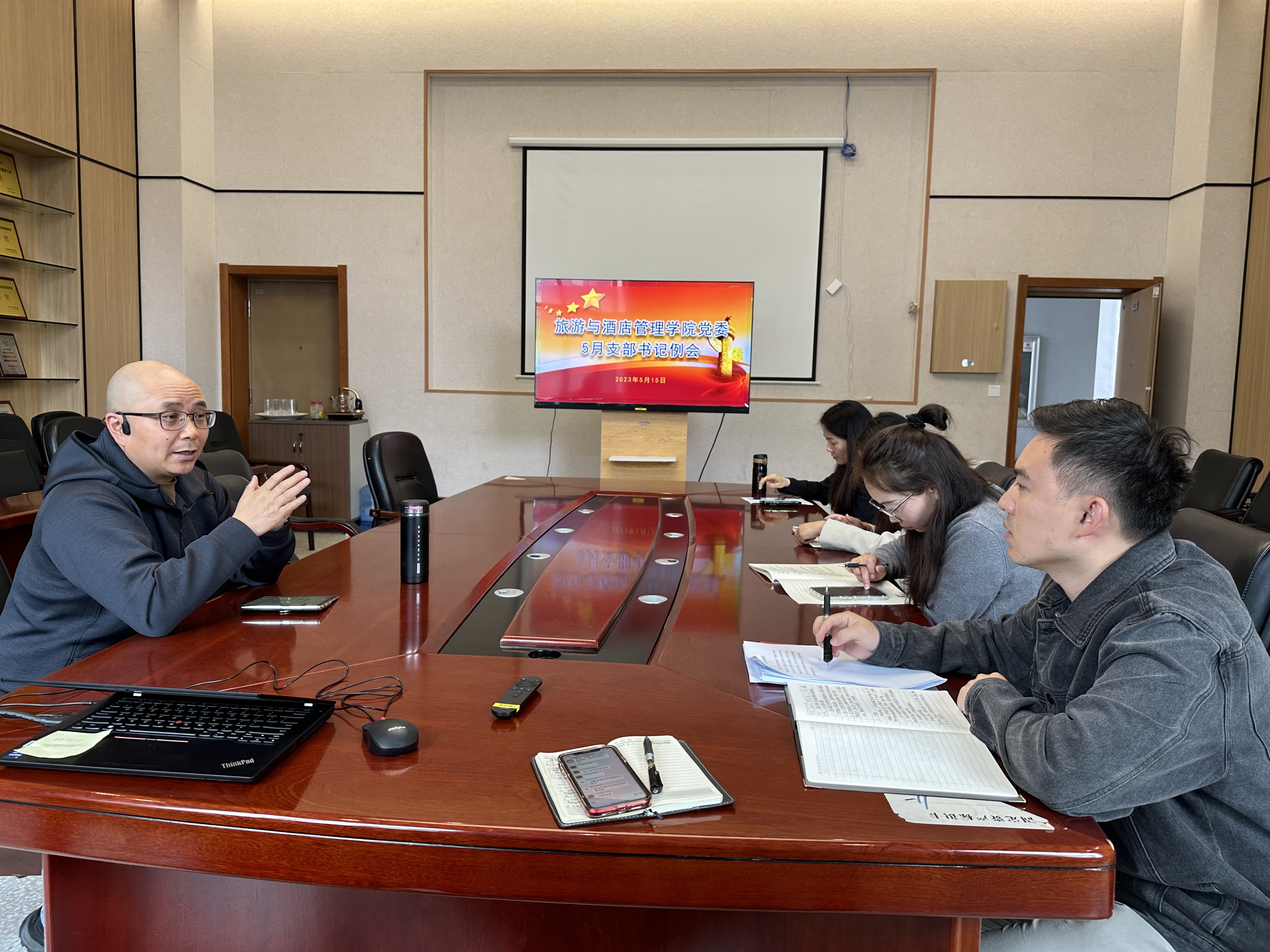 为推进党建工作有序开展,2023年5月15日,旅游与酒店管理学院党委在齐远楼333会议室召开2023年5月支部书记例会,学院党委书记李健、教职工第一支部书记王静、学生第一支部书记杨倩、学生第二支部书记王婧、学生第三支部书记杨雅淑和组织员张瑞程参加了会议,会议由李健书记主持。