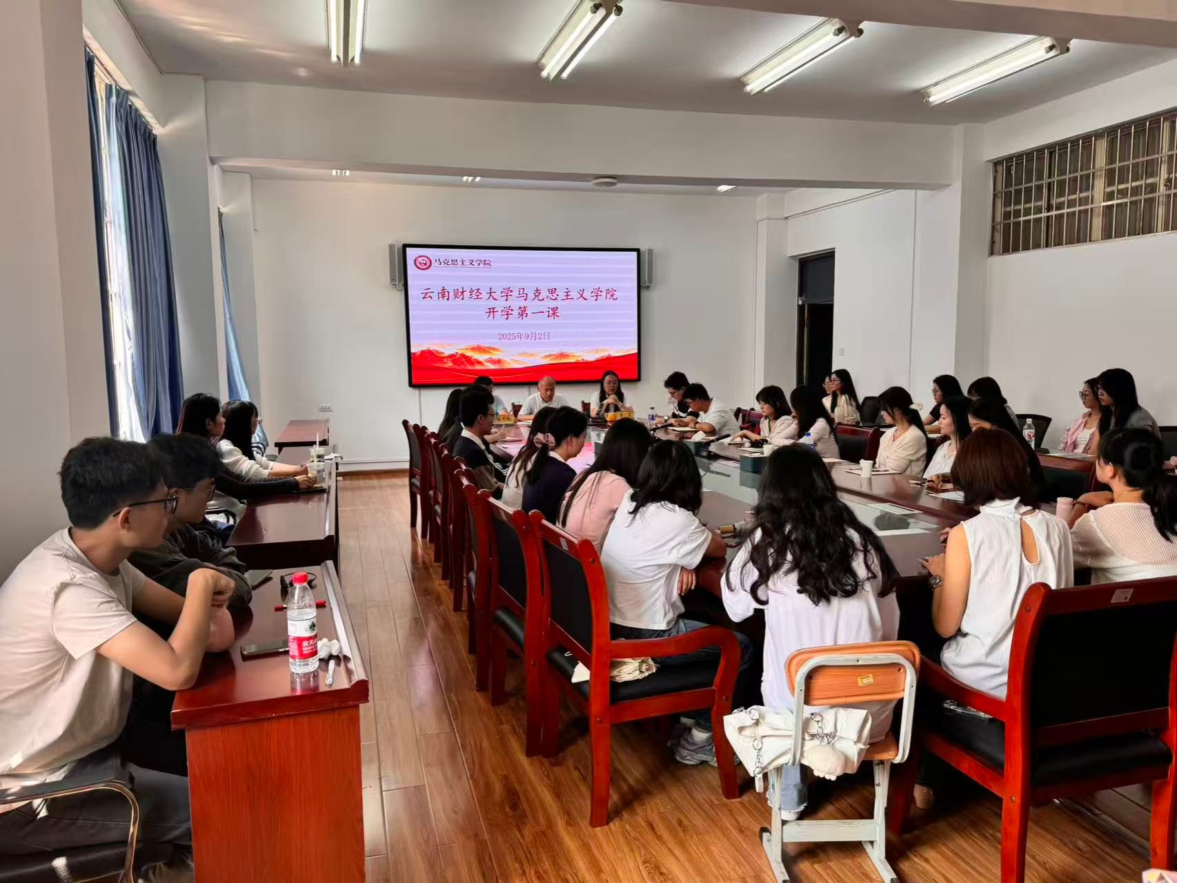 宁乐锋院长在总结时从学术与职业发展切入,强调研究生要理性认知互联网、严守网络秩序,以兴趣为导向结合专业制定学术规划,科学管控时间,深耕马克思主义理论研究,锤炼学术本领。曾蕾书记围绕中国人民抗日战争胜利80周年,全面阐述抗战精神的内涵与意义,与同学们共同重温了云南在抗日战争中做出的突出贡献。她鼓励研究生要从抗战胜利的历史中汲取奋进力量,树立正确的历史观,自觉抵制历史虚无主义,在新时代大力弘扬主旋律。耿齐航副书记聚焦校园安全问题向同学们开展安全教育并组织学习宗教政策相关知识。