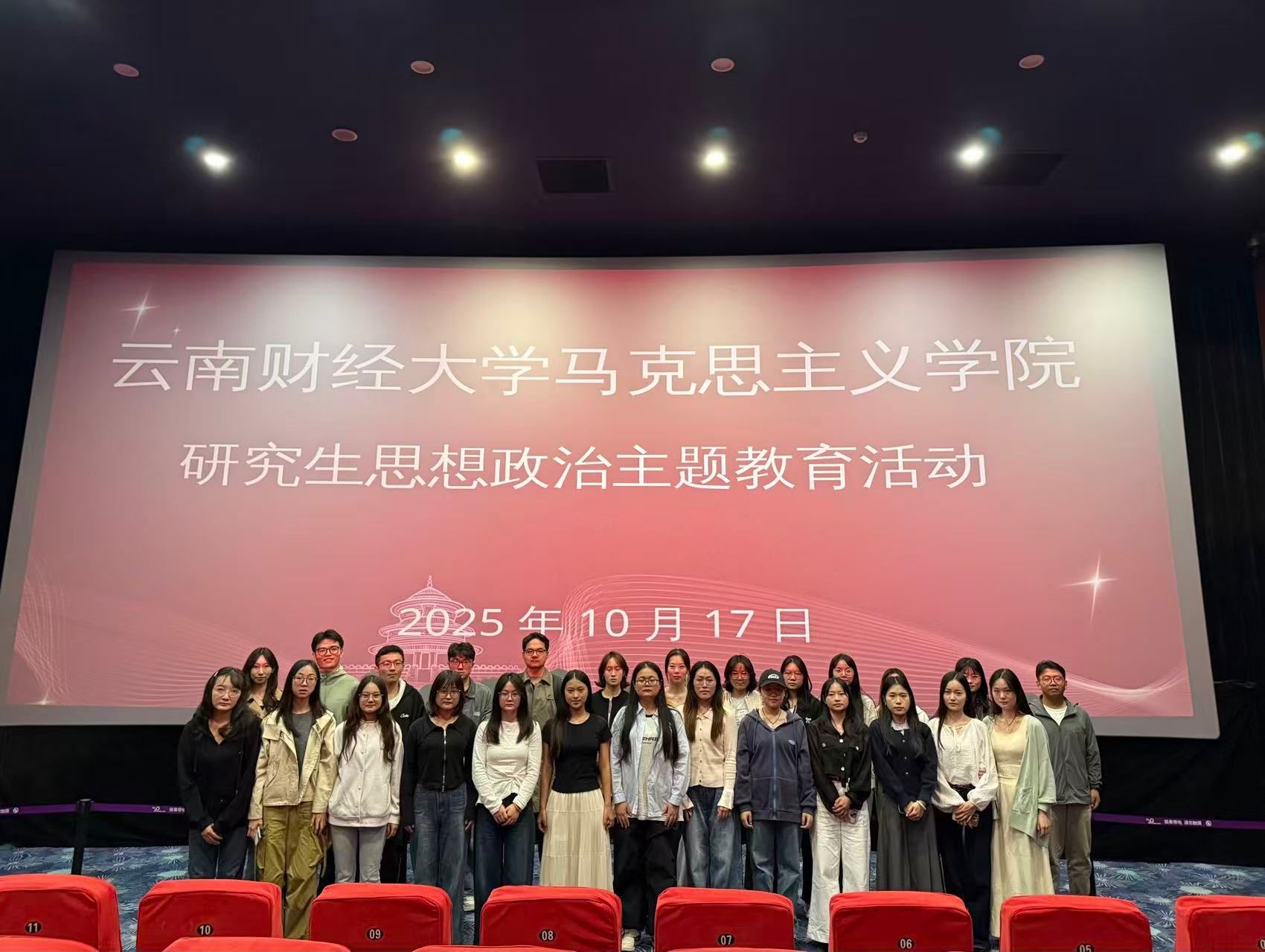 为进一步引领学院研究生坚定理想信念,厚植爱国情怀,增强国防意识与责任感,坚定不移听党话、跟党走,把爱国情、强国志、报国行自觉融入全面建设社会主义现代化国家、实现中华民族伟大复兴的奋斗之中。10月17日下午,马克思主义学院研究生党支部组织全体学生观看爱国主义题材电影《志愿军:浴血和平》。通过沉浸式观影,将思想政治教育与历史叙事深度融合,为青年学子上了一堂生动的“行走的思政课”。