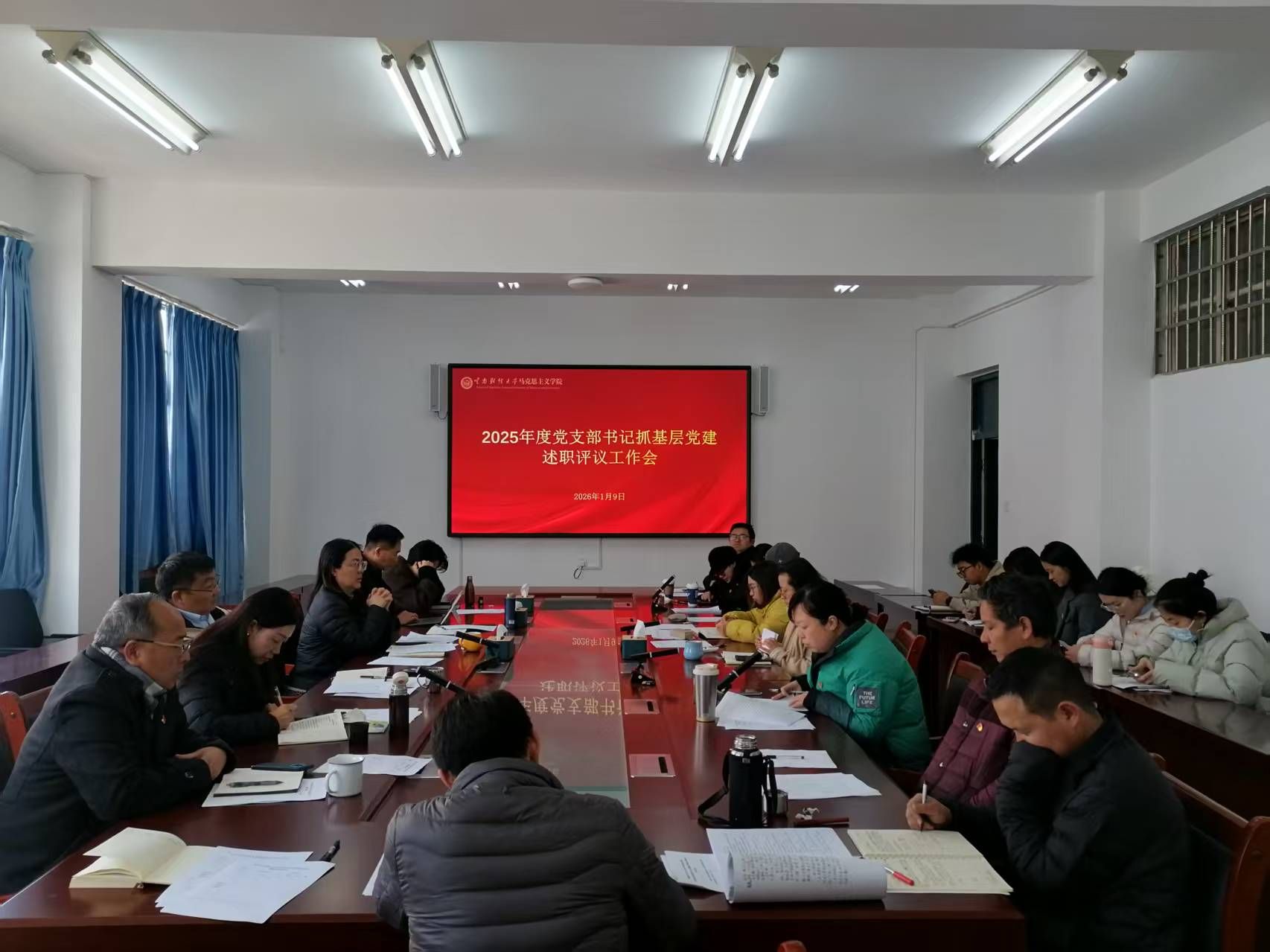 2026年1月9日,马克思主义学院党委在卓远楼406会议室召开2025年度党支部书记抓基层党建述职评议考核会。学院党委委员、党支部书记、支委以及党员代表参加会议。会议由学院党委书记曾蕾主持。