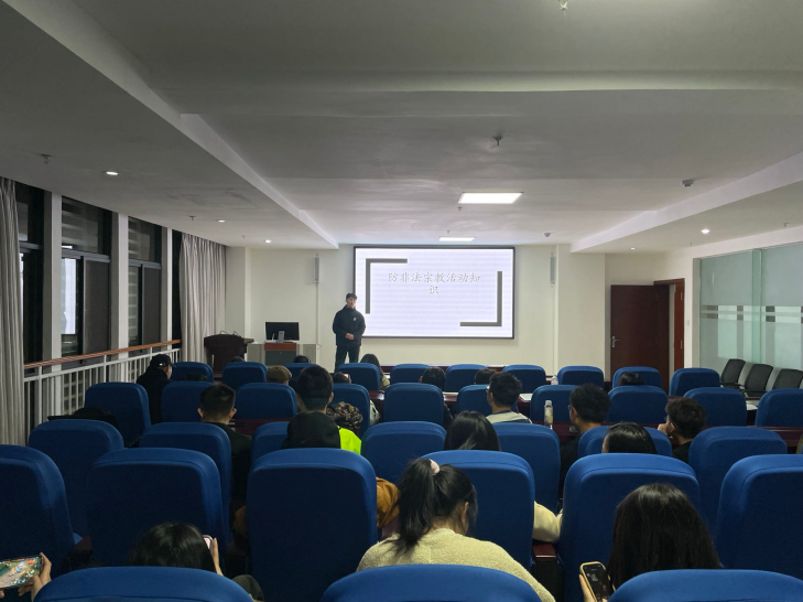为进一步加强学生安全宣传教育工作,提高学生们的安全意识和避险能力,切实保障学生的生命安全。2023年3月29日,马克思主义学院为对学生进行安全教育,于英华苑A-416多功能报告厅成功召开“我来讲安全”主题班会。本次主题班会共有23个主题,分别由23位同学讲述。主题内容分别为防火知识、防盗知识、防骗知识、防不良校园网贷知识、防抢知识、防滋扰知识、防性侵害知识、安全用电知识、交通安全知识、食品安全知识、预防呼吸道疾病传染卫生防疫知识、禁毒防艾知识、大学生心理危机识别及应对、计算机和网络安全知识、国家安全知识、防踩踏安全知识、防暴恐安全知识、防校园欺凌知识、灾害自救知识、防非法宗教活动知识、防汛防涝防溺水知识、常用急救知识、报案、急救电话及使用方法。
