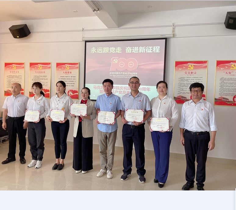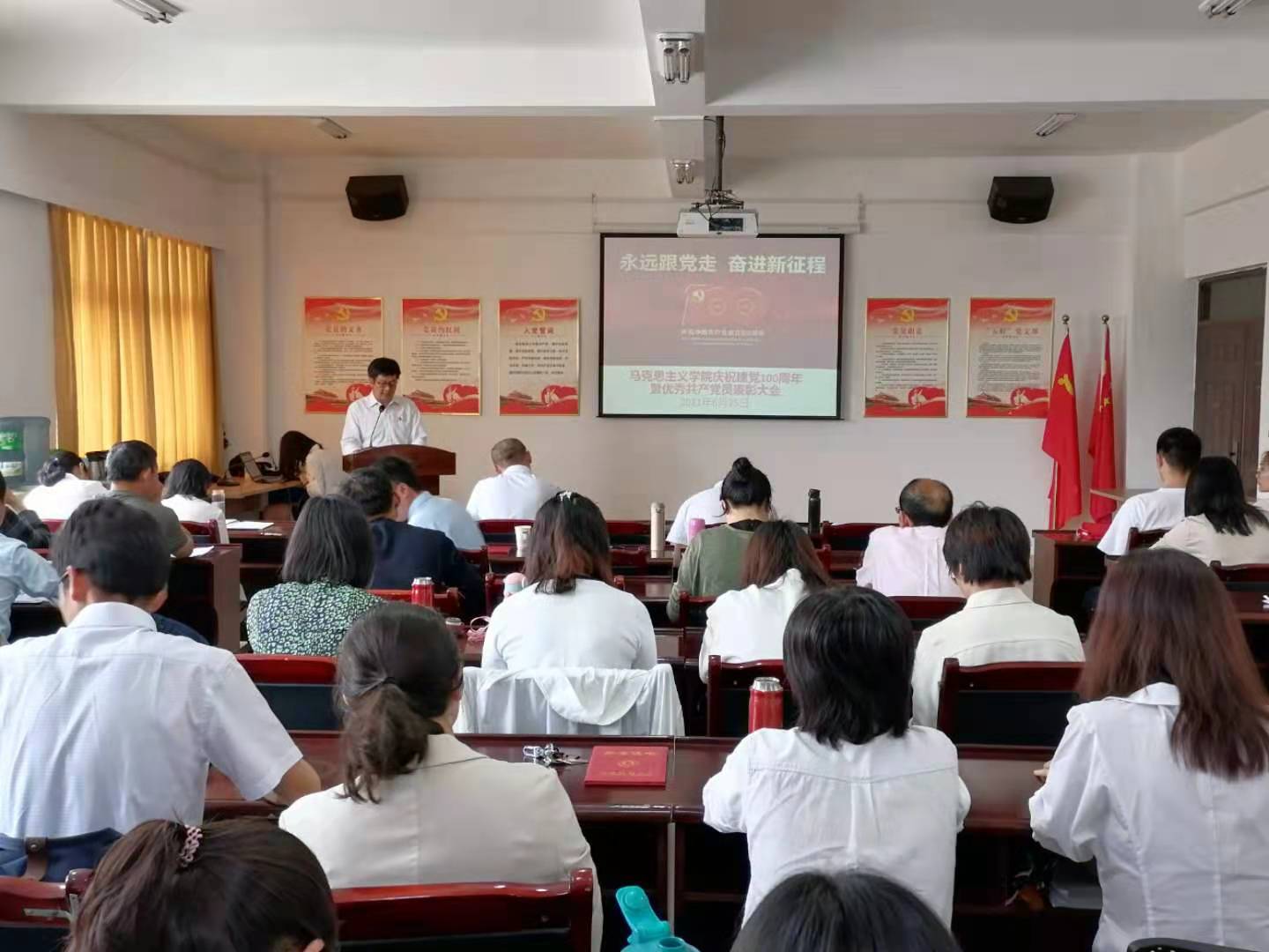为庆祝中国共产党100周年华诞,6月25日下午,马克思主义学院在博远楼311会议室举行优秀共产党员表彰大会,会议由学院党委副书记赵小玎主持。学院全体师生党员参加会议,党外人士代表马雁琳、彭家新、张锐和白义俊4位老师列席会议。