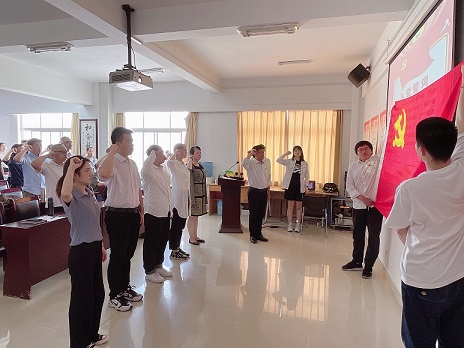 面对鲜红的党旗,在学院党委书记李亚军同志的带领下,新党员进行了入党宣誓,与会老党员重温了入党誓词。新党员代表陈泫伊同志以“精神与传承,中国共产党人精神谱系再认识”为题发言,讲述了自己加入党组织的心路历程。