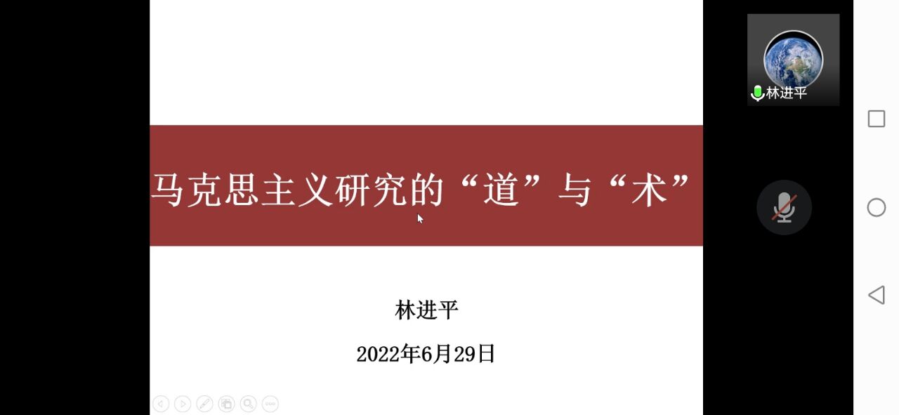 6月29日,林进平教授作题为“马克思主义研究的‘道’与‘术’”的专题讲座。林教授从融通马克思主义理论资源,丰富马克思主义研究中国元素、正确理解唯物史观和辩证法的地位与作用、建设马克思主义研究价值殿堂等解析了马克思主义研究的“道”;从学术规范与论文写作等剖析了马克思主义研究的“术”。