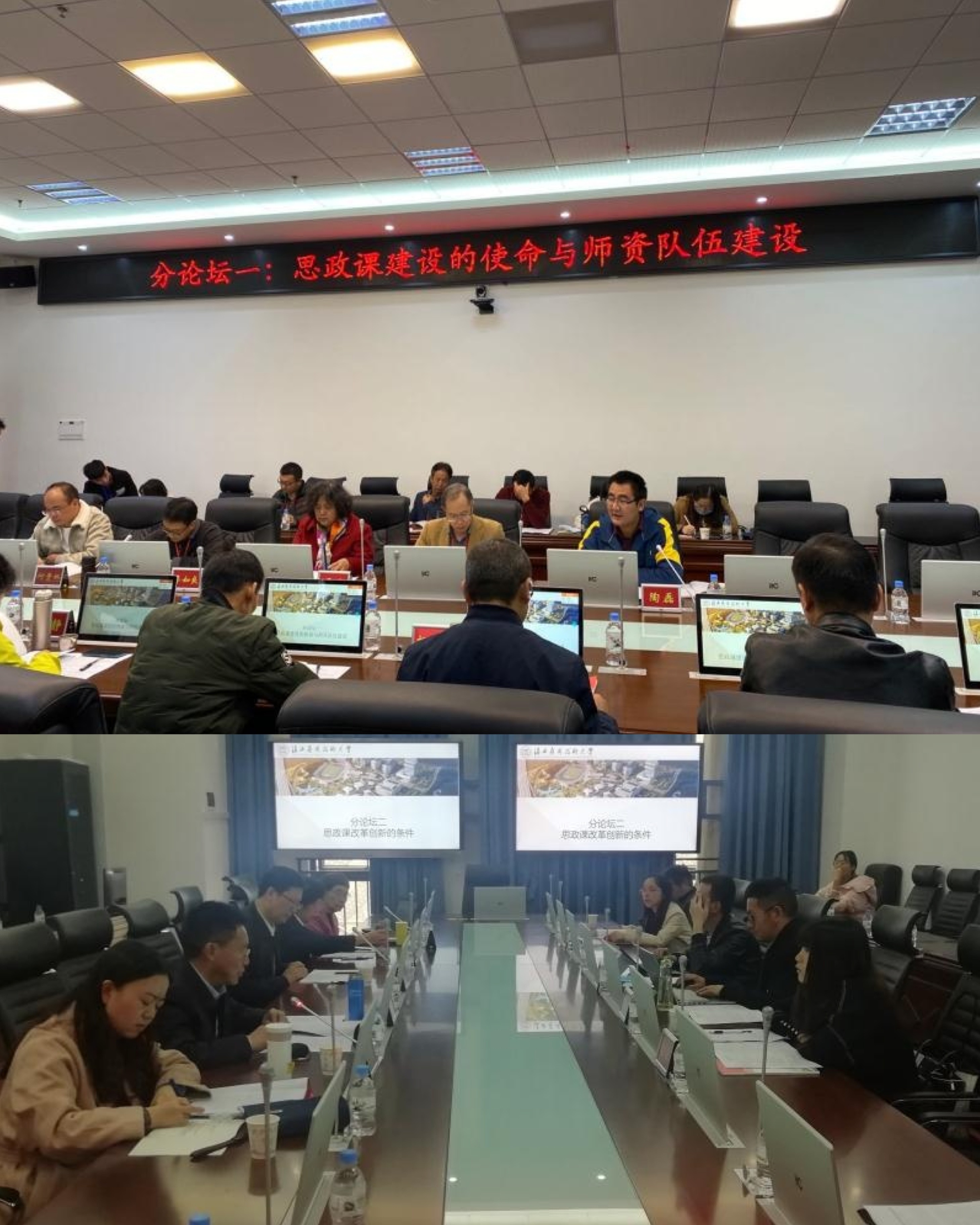 分论坛研讨分三个会场同时进行,分别以“思政课建设的使命与师资队伍建设”“思政课改革创新的条件”“思政课的嵌入内容及形式”主题进行研讨。bat365官网马克思主义学院教师阮金纯、陶磊、和生、何贵林分别以《习近平关于高校思想政治工作重要论述的方法论特征》《守正与创新——新时代边疆民族地区高校思政课改革创新的理论与实践》《从八个维度谈思政教师“视野要广”》《云南推进高校思政课教学改革创新的师资资源保障机制研究》为题作了交流发言。在集体备课环节,bat365官网教师高学敏作《思想道德修养和法律基础》示范课展示。