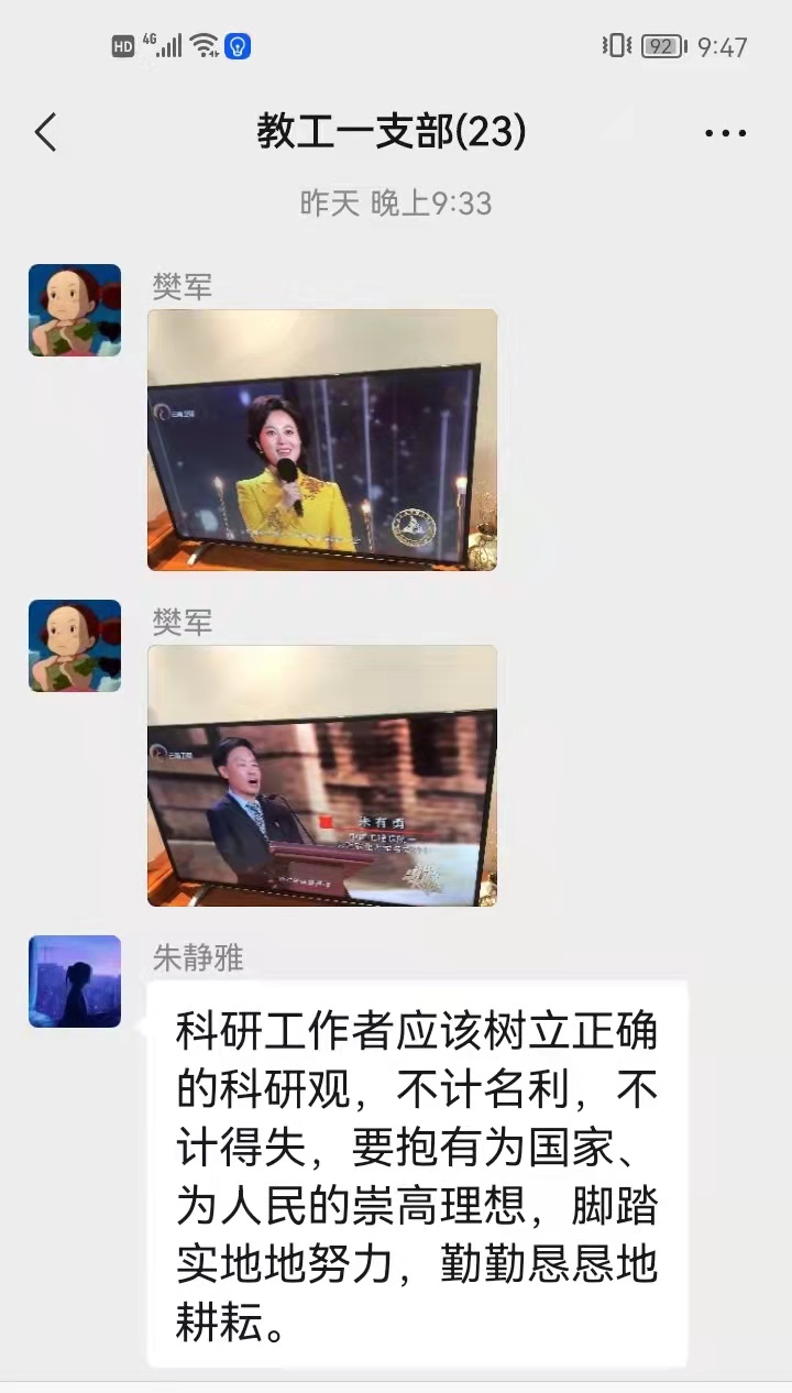 思政课教师陈斐表示:作为思政课教师,我们要以朱院士为榜样,一要学习院士坚守初心、对党忠诚的崇高品格,永远忠诚于党和人民。二要弘扬人民教师以德施教的仁爱之心和至善至美的师者大爱。三要争做新时代“四有”好老师,自觉树立崇高的职业理想和坚定的职业信念。四要以院士为榜样,积极投身教育扶贫。坚定政治立场、加强自身建设,深怀爱党爱国之心、踏实做好教育之事业。