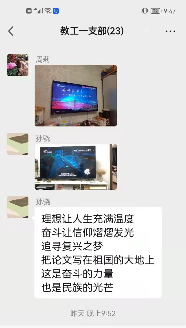 31根据《中共云南省委教育工委关于组织收看张桂梅思政大讲堂第五讲的通知》要求,学院认真组织全体师生收看“张桂梅思政大讲堂”第五讲《奋斗的力量——把论文写在祖国大地上》。学院在校的32名研究生分别集中在3个宿舍进行学习收看并交流学习感想。60位教职工自行收看,以党支部为单位线上交流学习心得。
