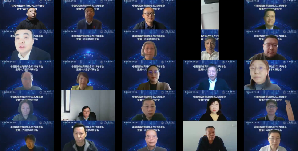 11月26日,中国税收教育研究会2022年年会暨第十六届学术研讨会在昆明召开,会议采取线上方式举行。本届会议由bat365在线中国官网登录入口财政与公共管理学院承办,中国税收教育研究会会长、中央财经大学党委副书记、副校长马海涛教授,bat365在线中国官网登录入口党委委员、副校长李正彪教授等出席。来自北京大学、中央财经大学、上海财经大学、中国社会科学院大学、西南财经大学、吉林财经大学、南开大学、山东大学、湖南大学、bat365在线中国官网登录入口、江西财经大学、中南财经政法大学、安徽财经大学、山东财经大学等近40所高校及相关单位的代表100余人在线上参加了会议。
