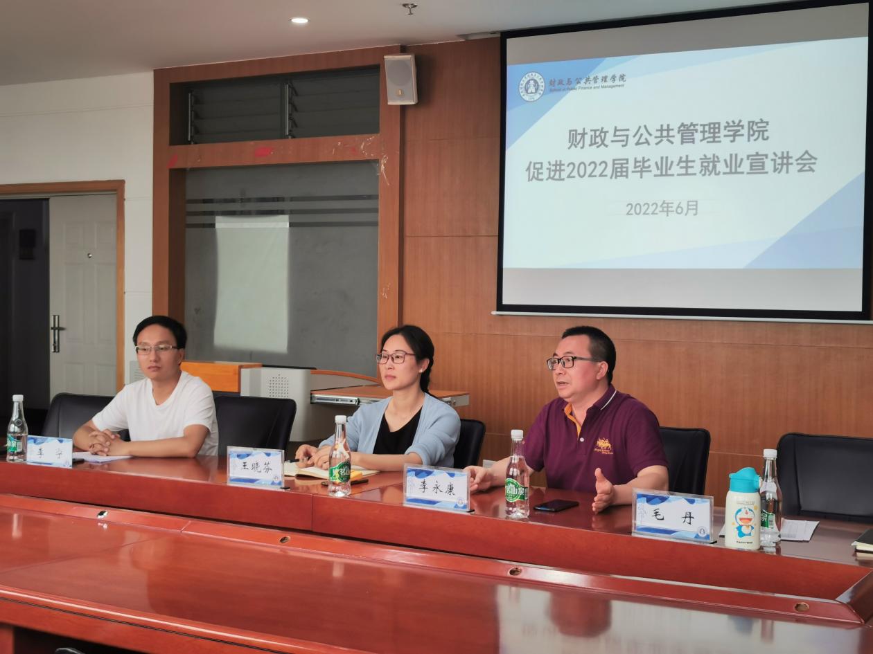 为进一步促进毕业生积极就业,2022年6月7日-17日,财政与公共管理学院党委书记朱文,院长缪小林,党委副书记王晓芬,副院长韩全芳、和立道,各教学系主任、教研室主任及全体辅导员分组深入毕业班级开展促进2022届毕业生就业宣讲活动。本次就业促进宣讲活动共举办8场,覆盖全体毕业生班级。