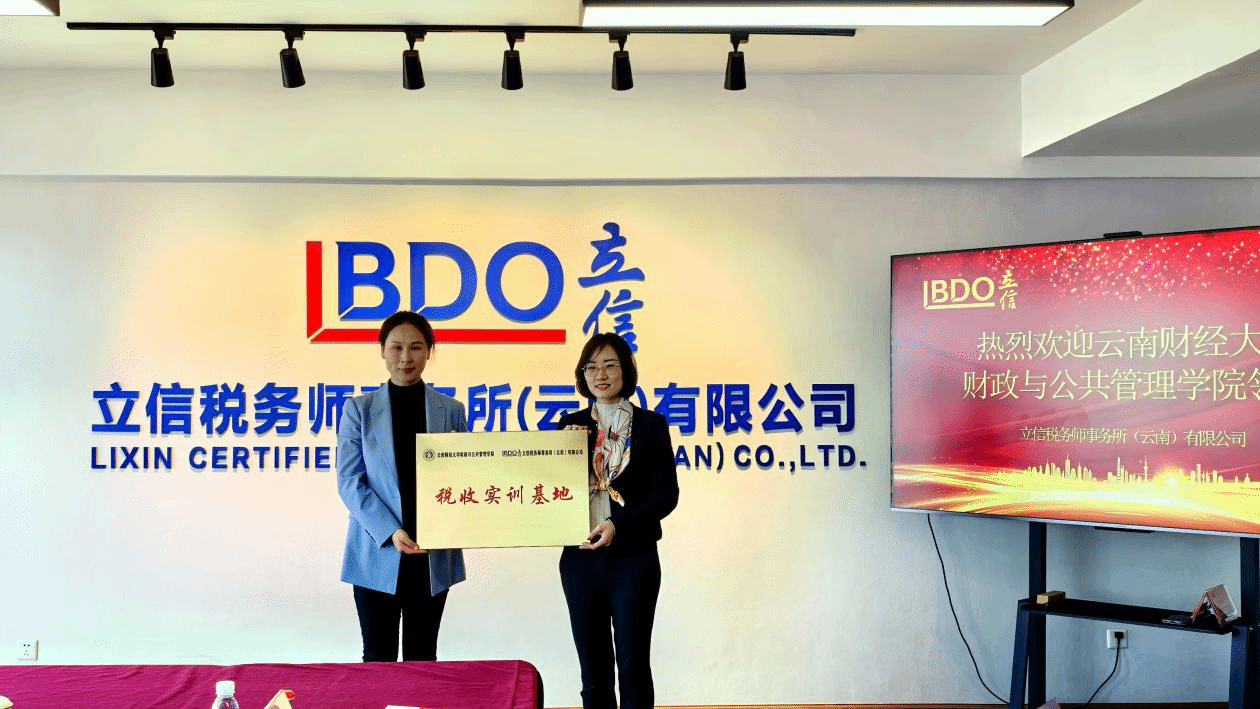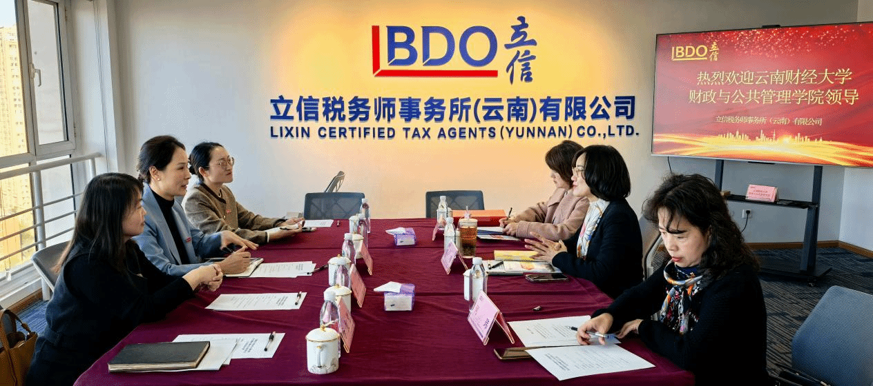 11月15日上午,财政与公共管理学院党委副书记王晓芬一行4人到立信税务师事务所(云南)有限公司进行财税实训基地签约挂牌,并开展访企拓岗交流活动。