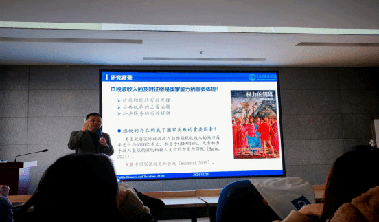随后,田彬彬教授讲解了实证研究内容。首先介绍了文章的实证策略与数据来源,然后从基准回归、异质性分析、进一步分析三个方面详细介绍了文章的实证结果,并据此得出政策启示:第一,扩大联合惩戒适用范围(如个税征管);第二,动态调整联合惩戒的标准;第三改进边际威慑效力,以提高税收征管效率,减少逃税行为,保障国家税收收入。
