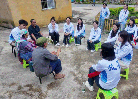 团队还聚焦“十户联防”传统治理智慧,以“院坝恳谈会”解码村庄决策、公共服务供给流程,调研“边境幸福村”治理创新,参与“一老一小”志愿服务,实地评估边疆公共服务的质量成效。依托“云财小政”AI助手,团队对标全国优秀基层治理案例,提出服务边疆的新思路新举措,将思政理论转化为推动地方治理创新的实践能力,让专业知识成为守护边境稳定、推动边疆发展的“新武器”,延续先辈“守土有责、守土尽责”的抗战精神。